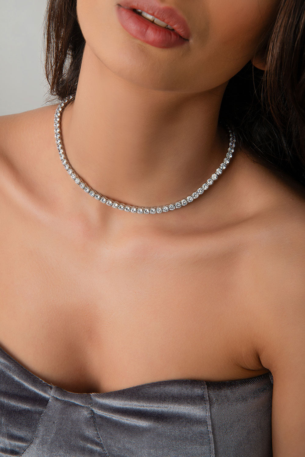 Gümüş Kristal taş detaylı 925 ayar su yolu gümüş kolye 82