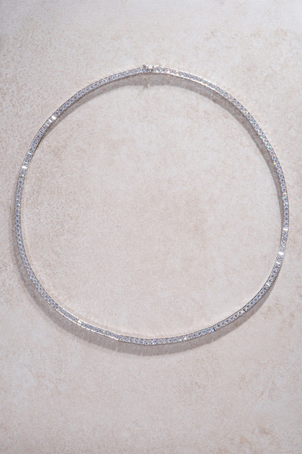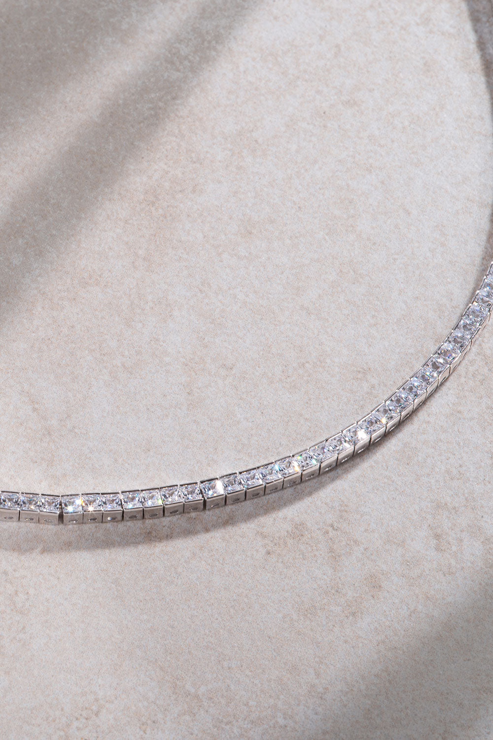 Gümüş Kristal taş detaylı 925 ayar su yolu gümüş kolye 86