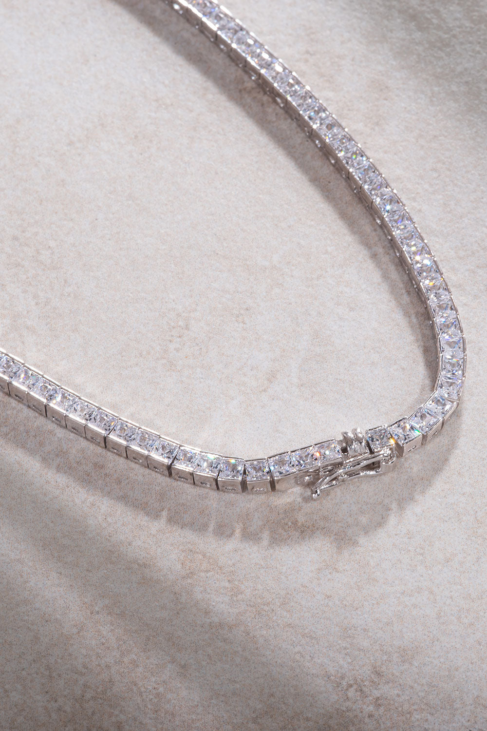Gümüş Kristal taş detaylı 925 ayar su yolu gümüş kolye 86