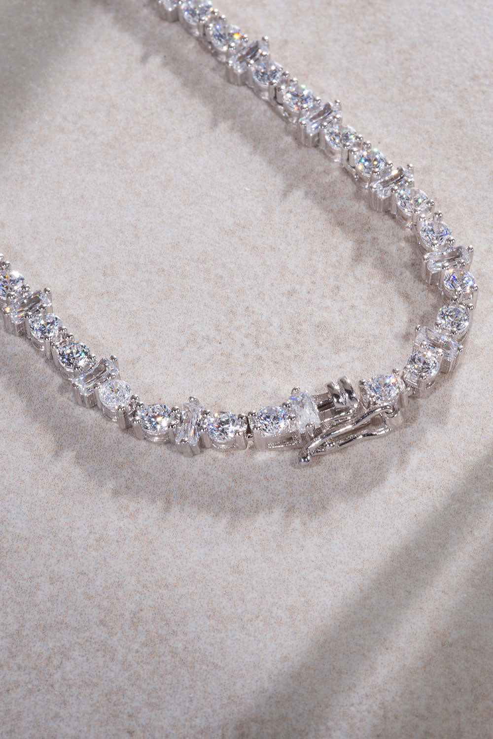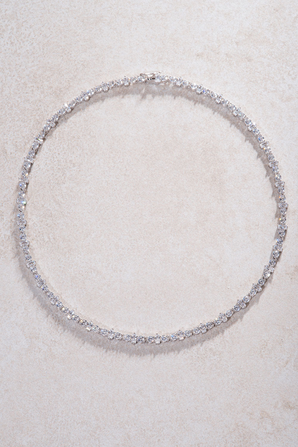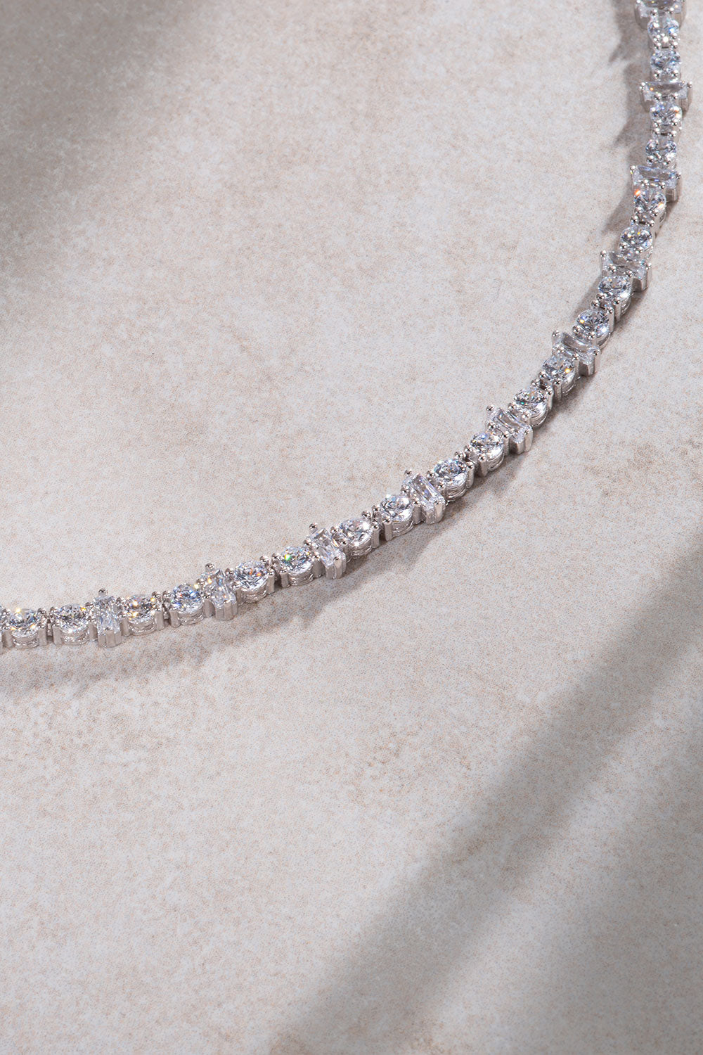 Gümüş Kristal taş detaylı 925 ayar su yolu gümüş kolye 90
