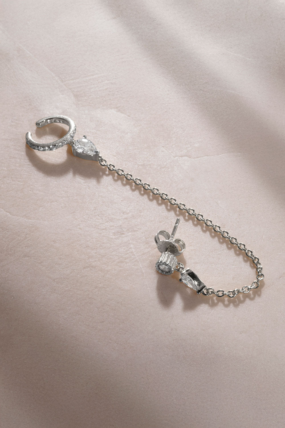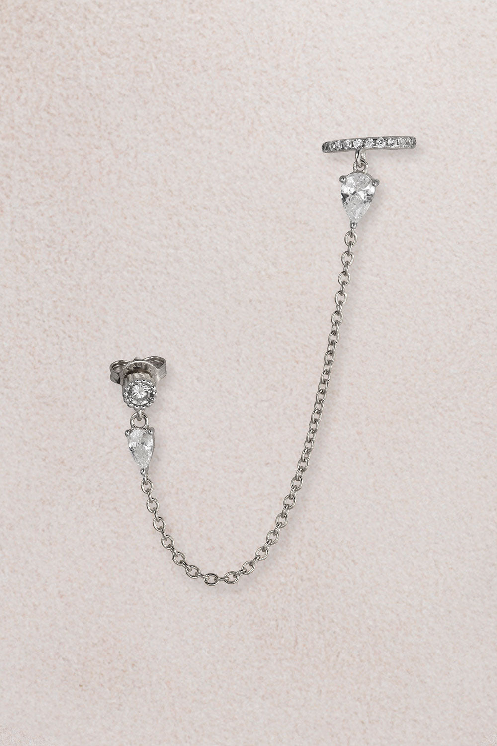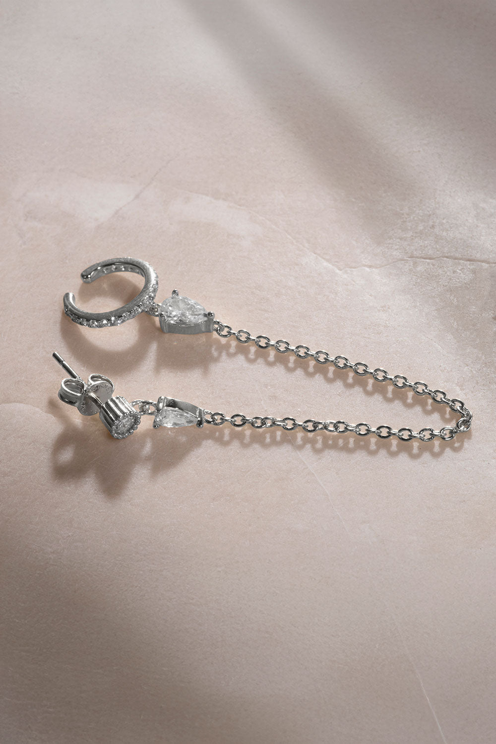 Gümüş Kristal taş detaylı tek zincirli 925 ayar gümüş küpe 44