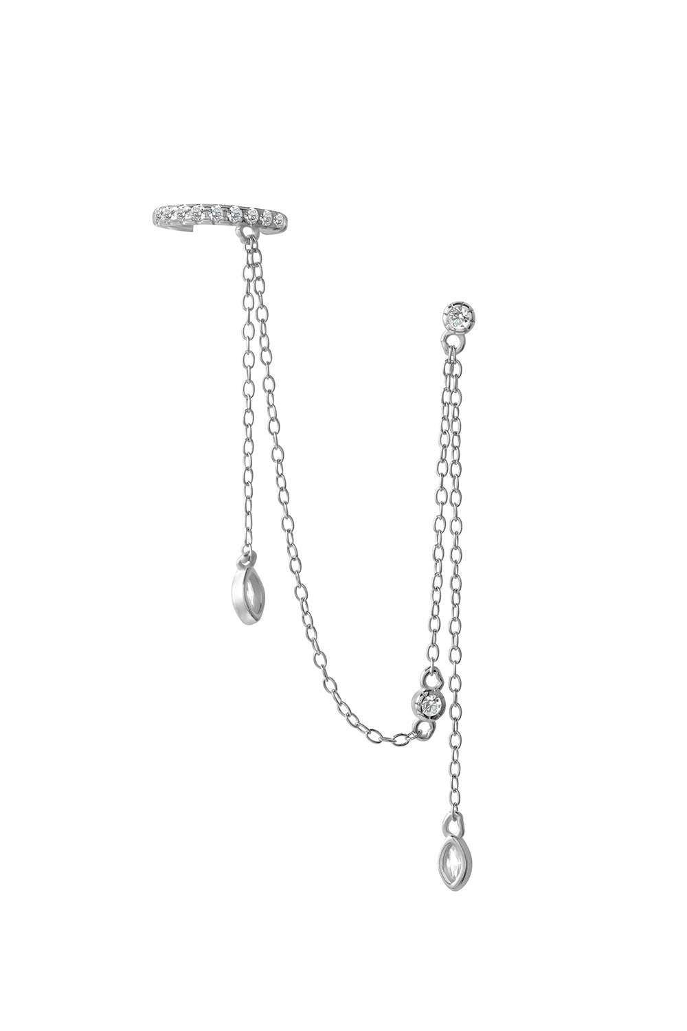 Gümüş Kristal taş ve zincir detaylı 925 ayar gümüş küpe 93