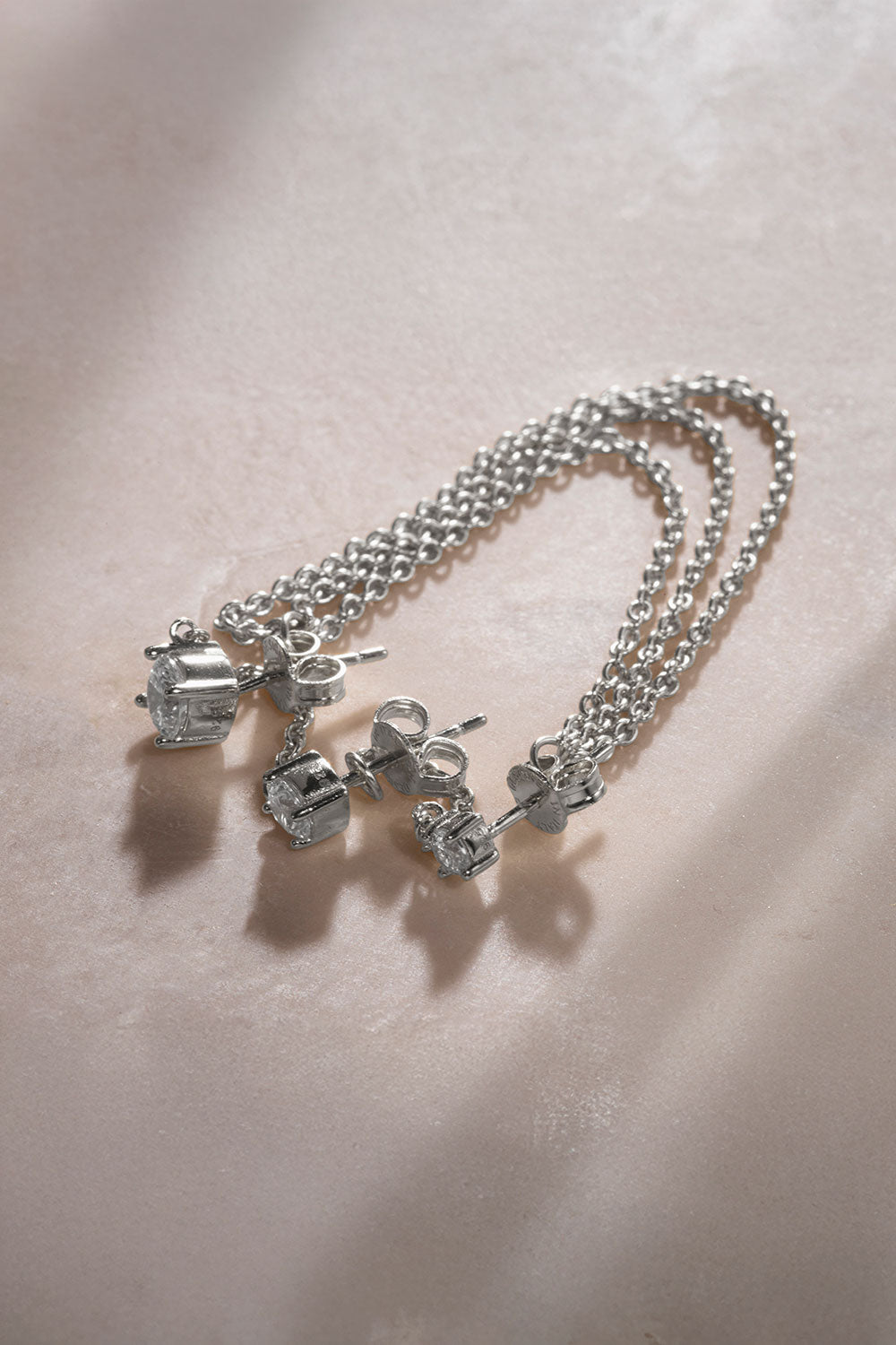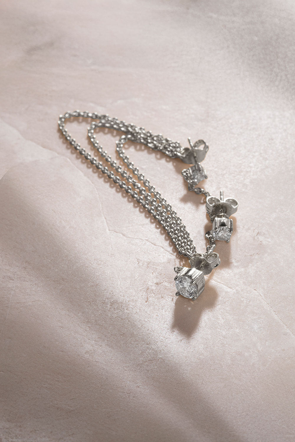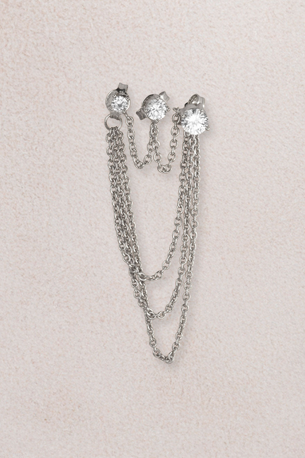 Ürün Özellikleri: İnce işçilikle tasarlanmış bu kristal üçlü gümüş küpe, zincir detayıyla ve kristal taşlarıyla sizi ön plana çıkarır.