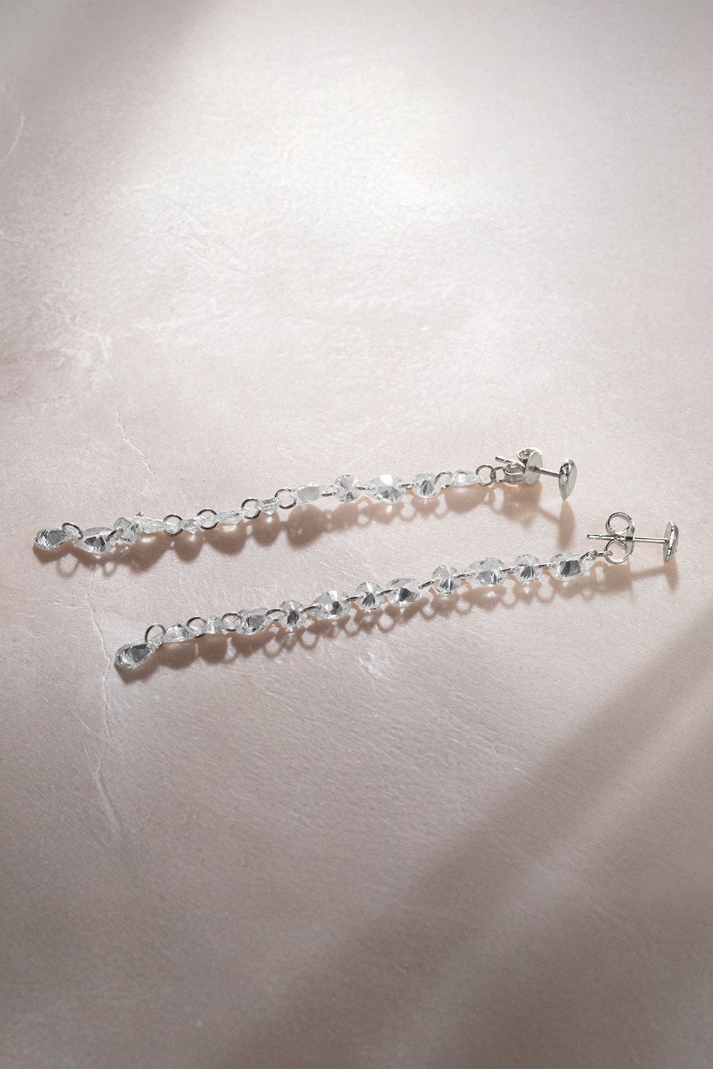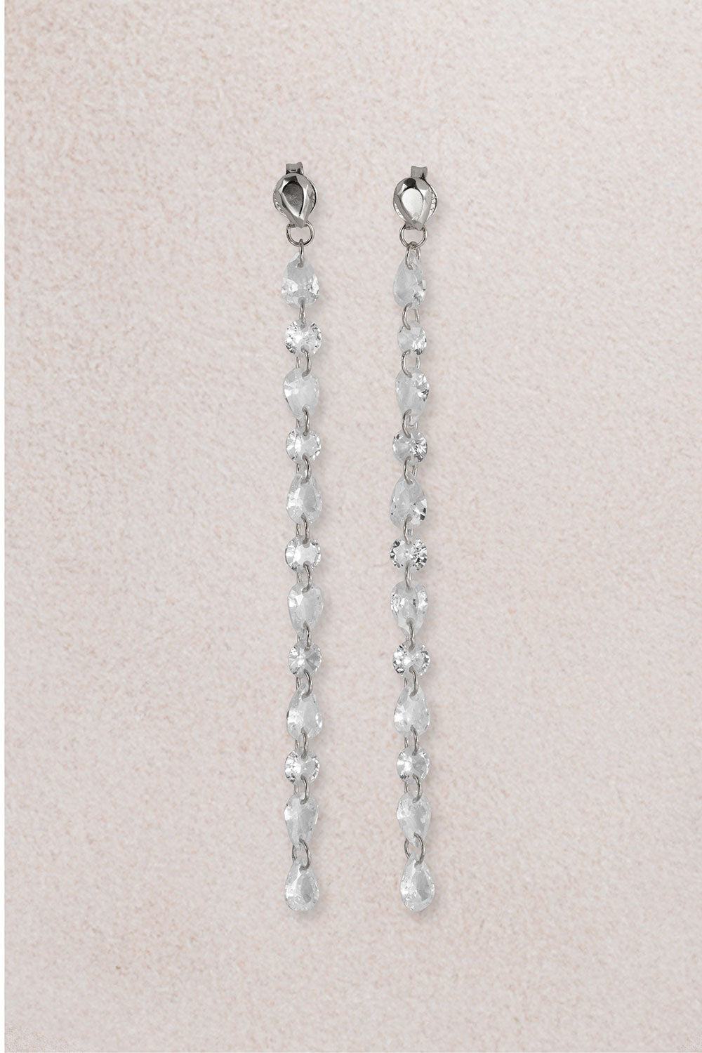 Gümüş Uzun ışıltı ve kristal taş detaylı 925 ayar gümüş küpe 60