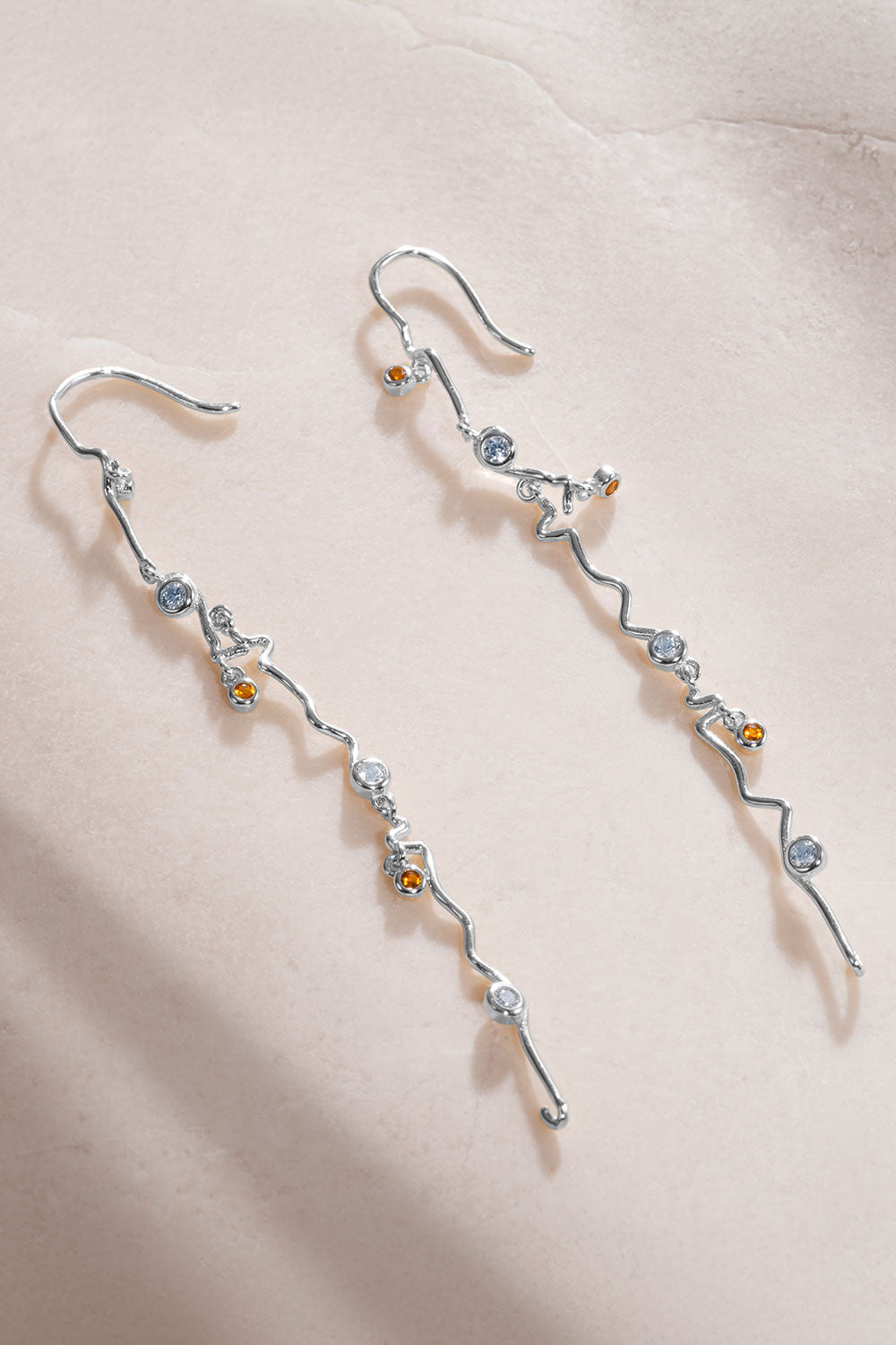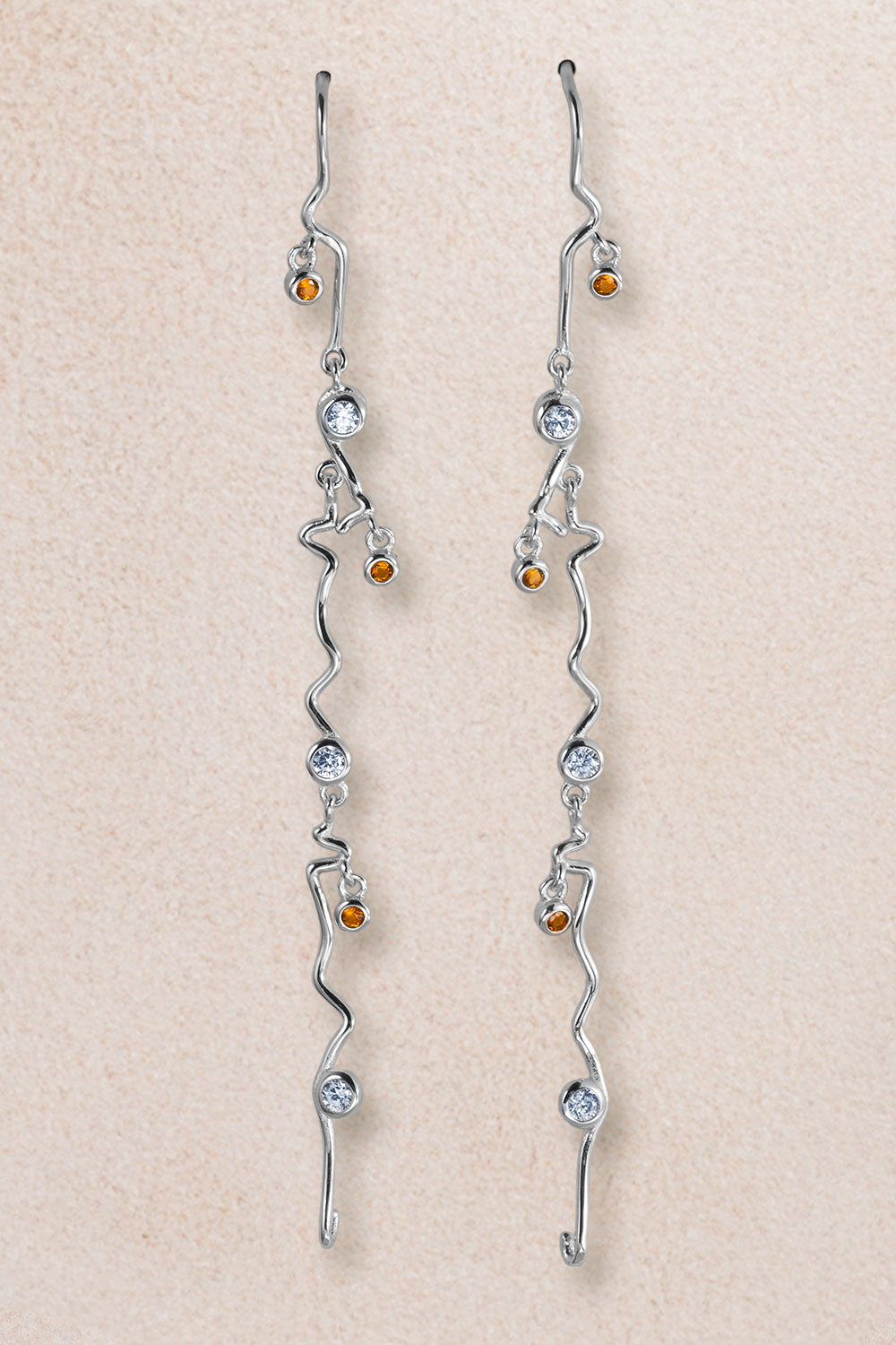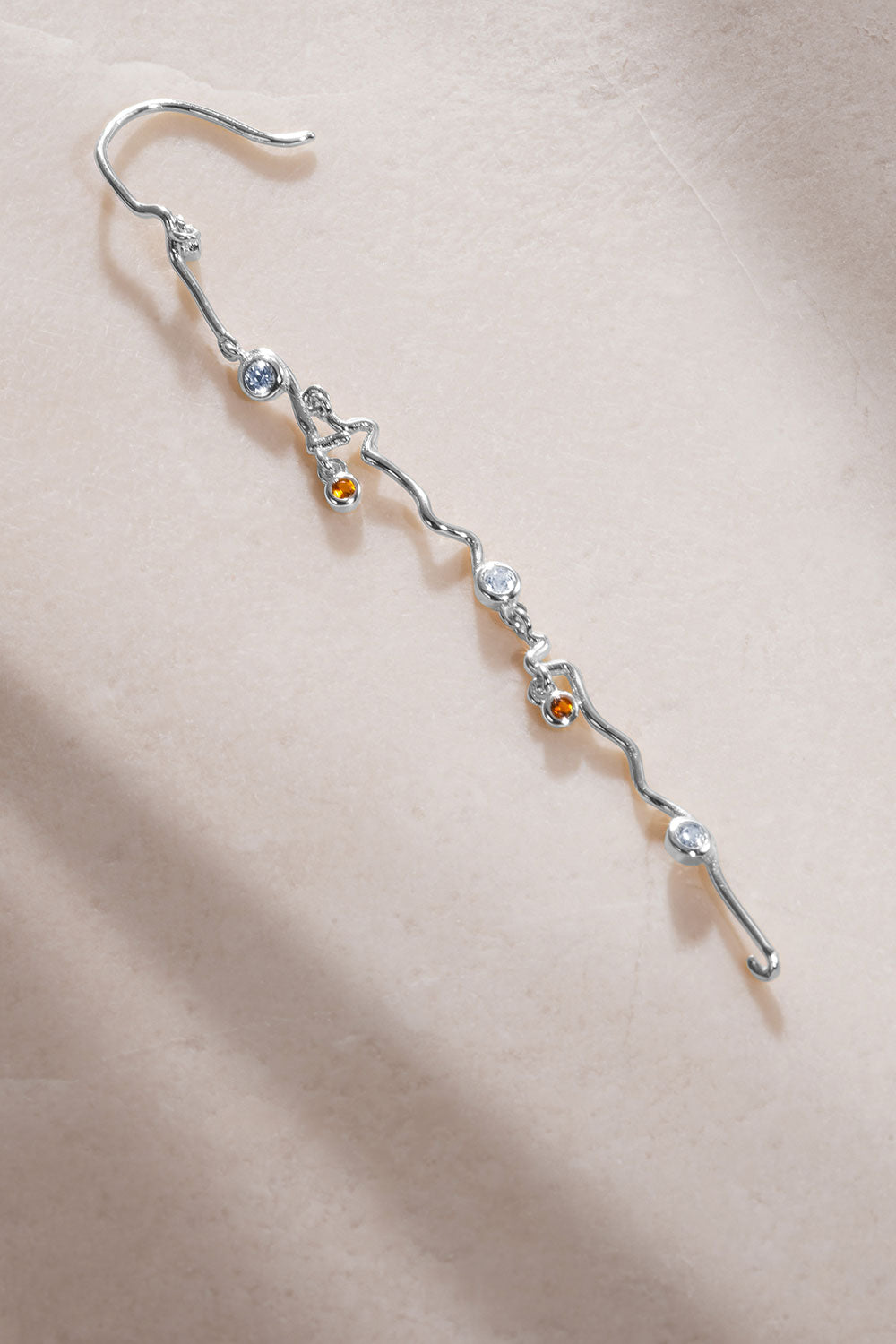 Gümüş Uzun ve sallantılı kristal taş detaylı 925 ayar gümüş küpe 34