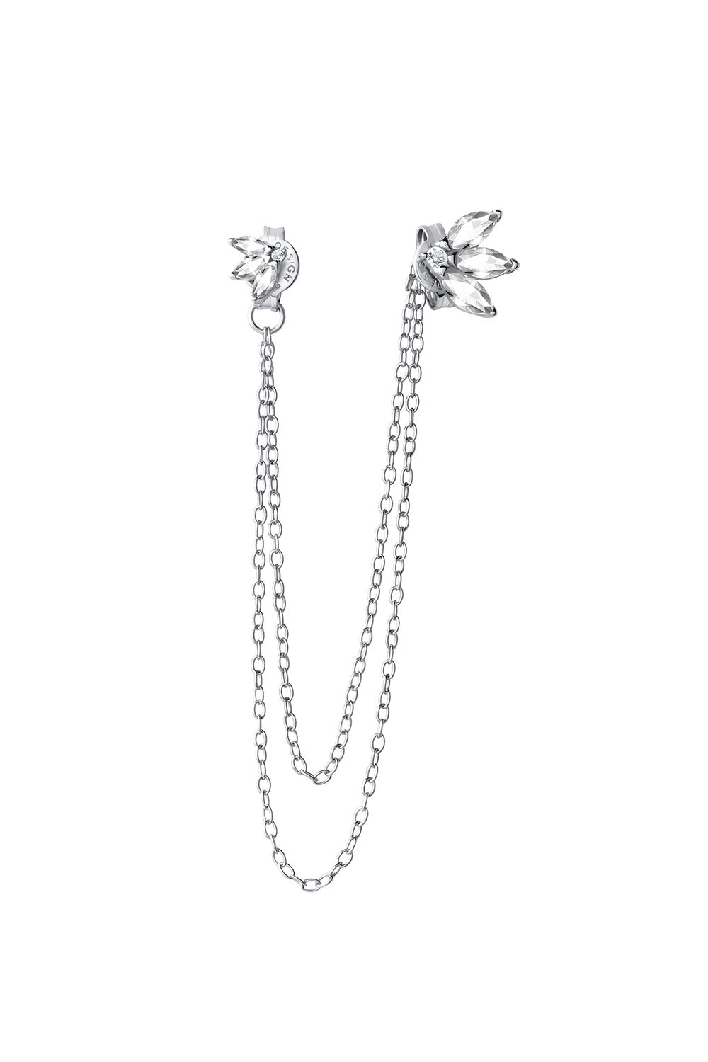 Gümüş Yaprak ve zincir detaylı 925 ayar gümüş küpe 94