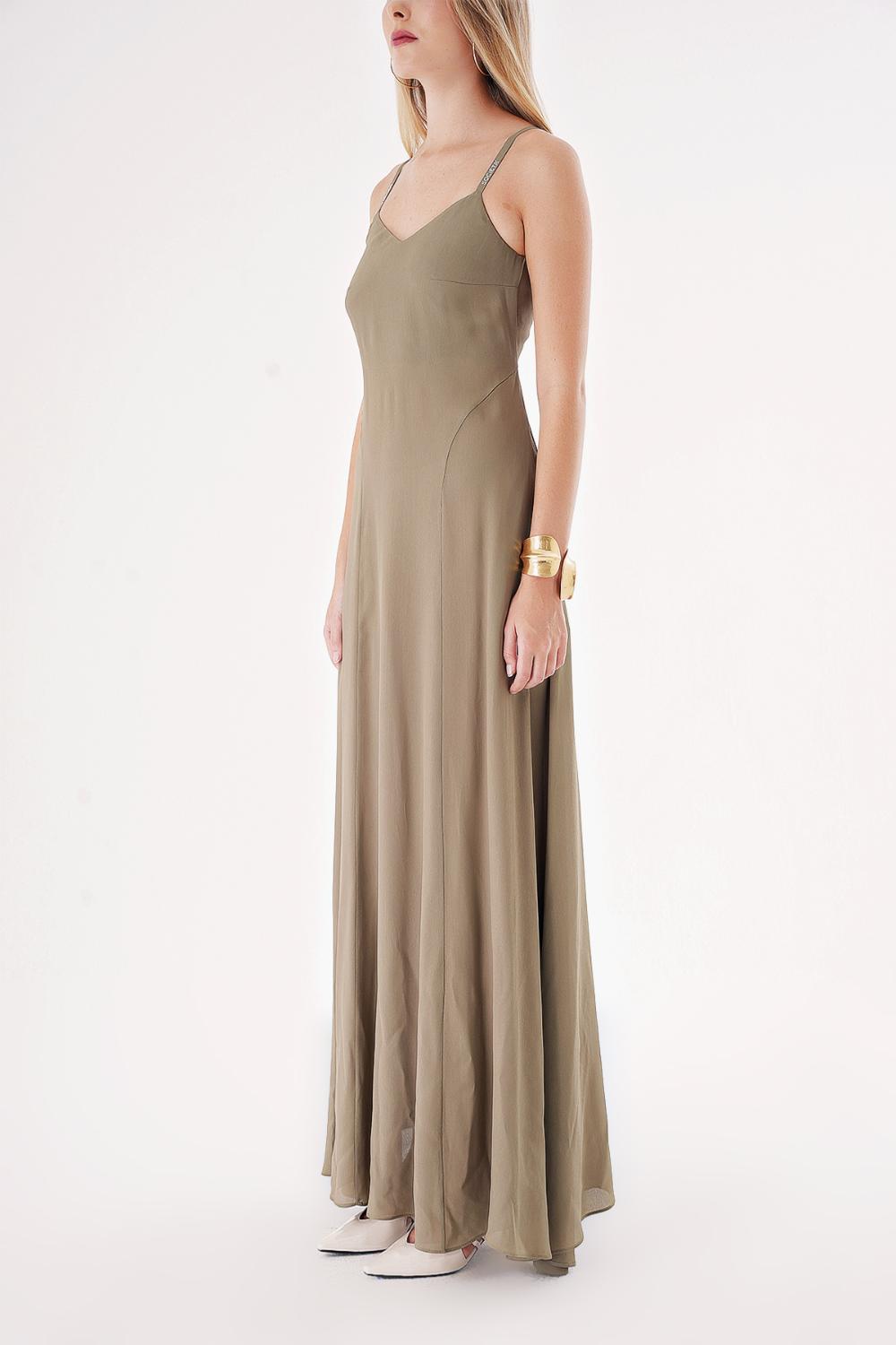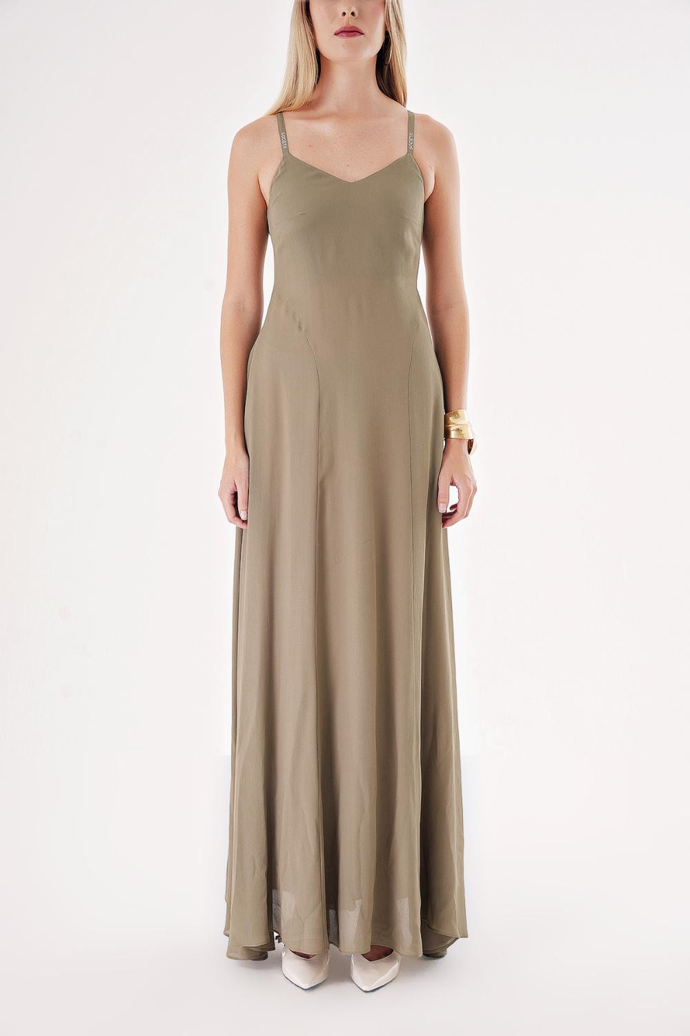 Haki Askılı taş detaylı rahat godeli elbise 94457