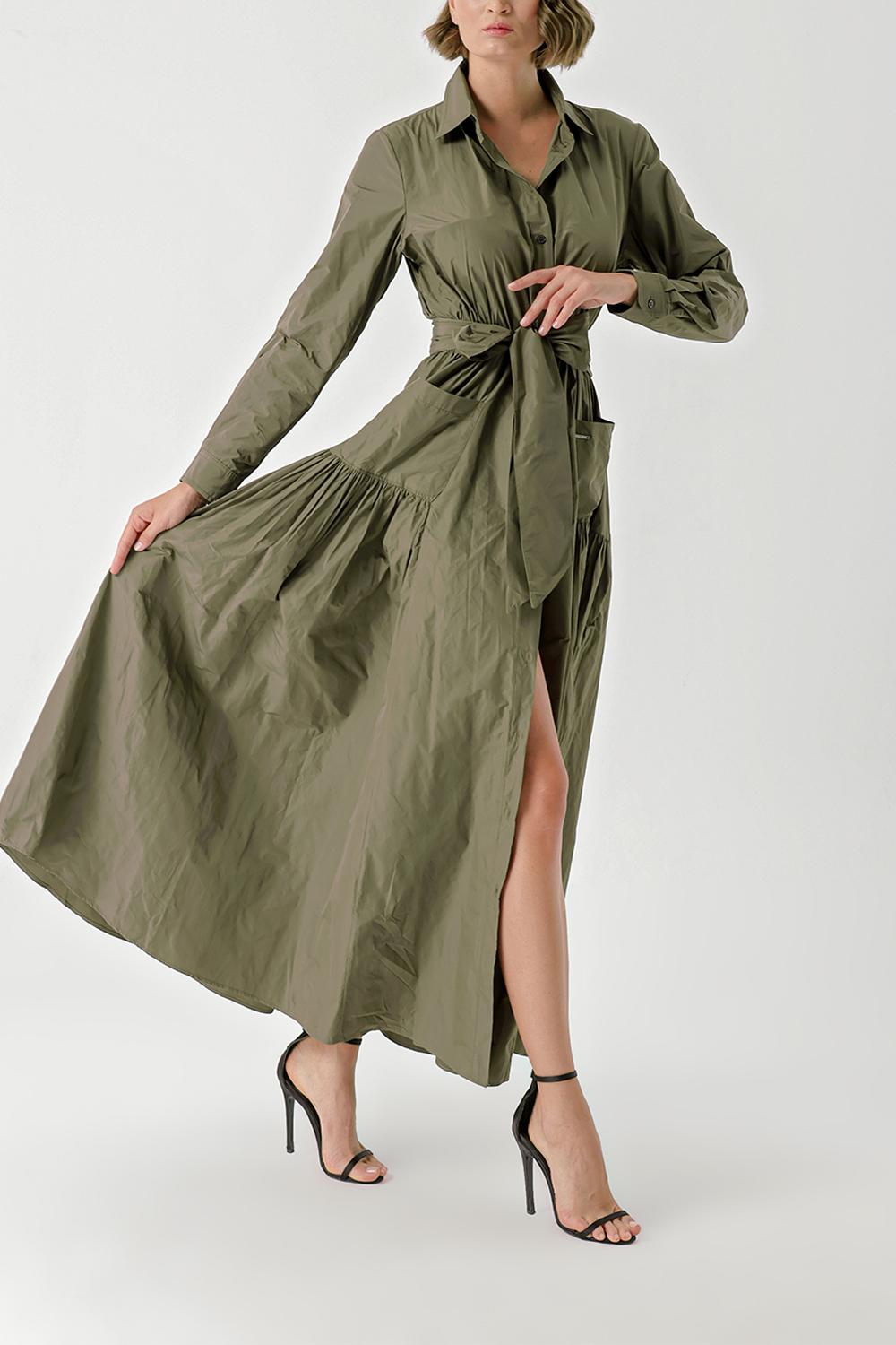 Haki Büzgülü uzun tafta gömlek elbise 94354
