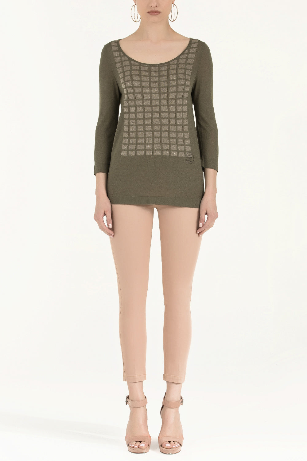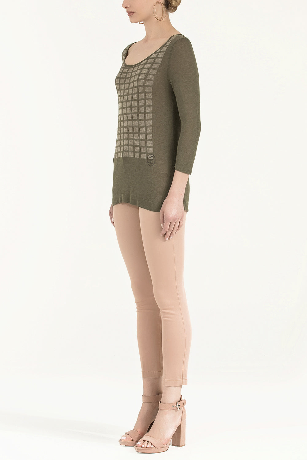 Haki Desen örgülü truvakar kol triko bluz 28442