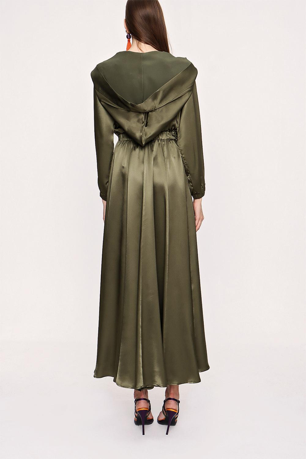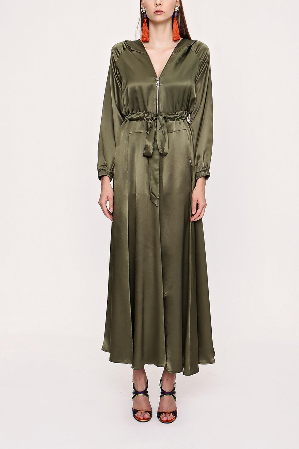 Haki Fermuarlı ve kapüşonlu uzun elbise 94064