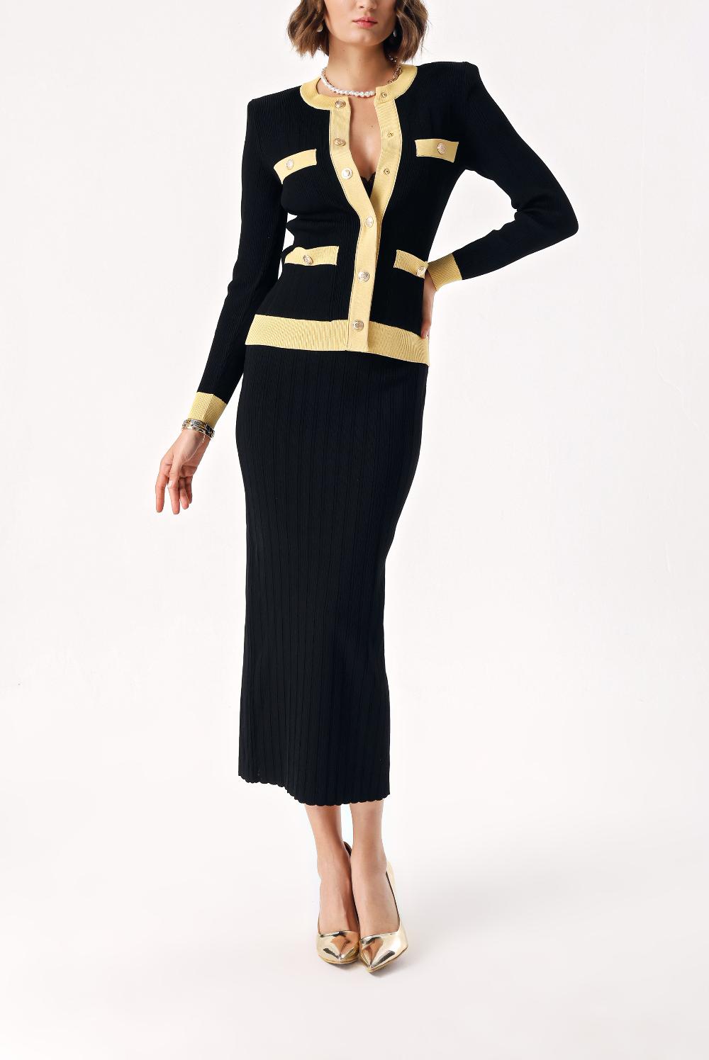Hardal Düğme detaylı hırka ve etekli takım 28879