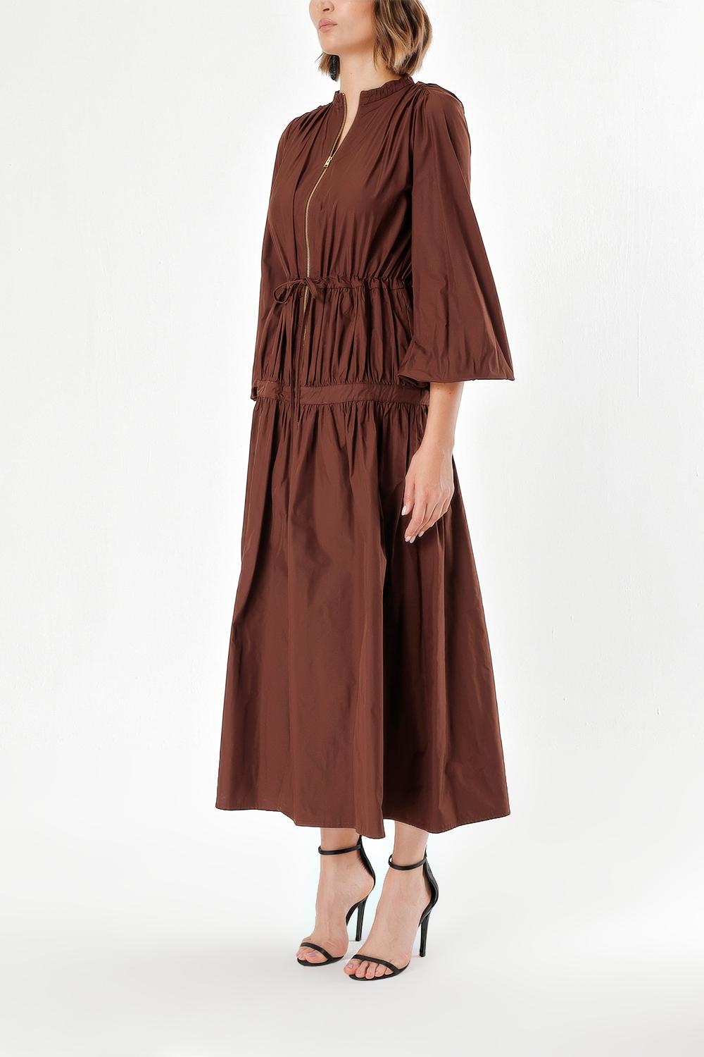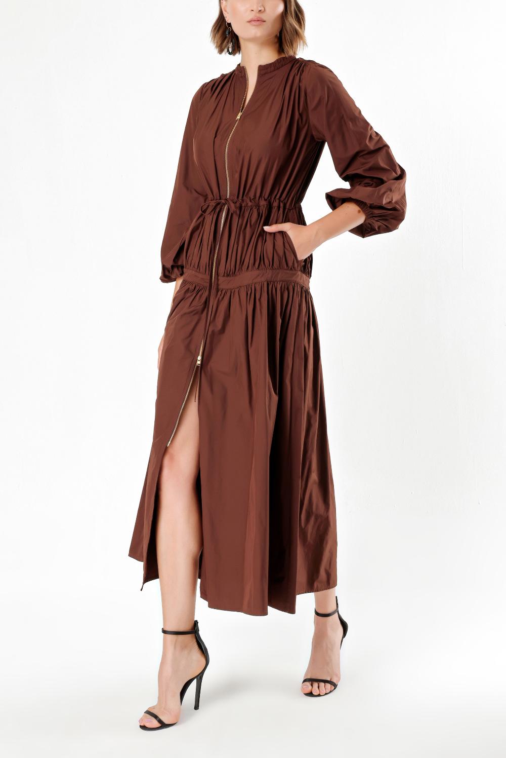 Kahve Beli lastikli büzgülü uzun elbise 93842