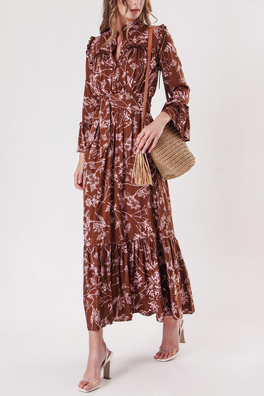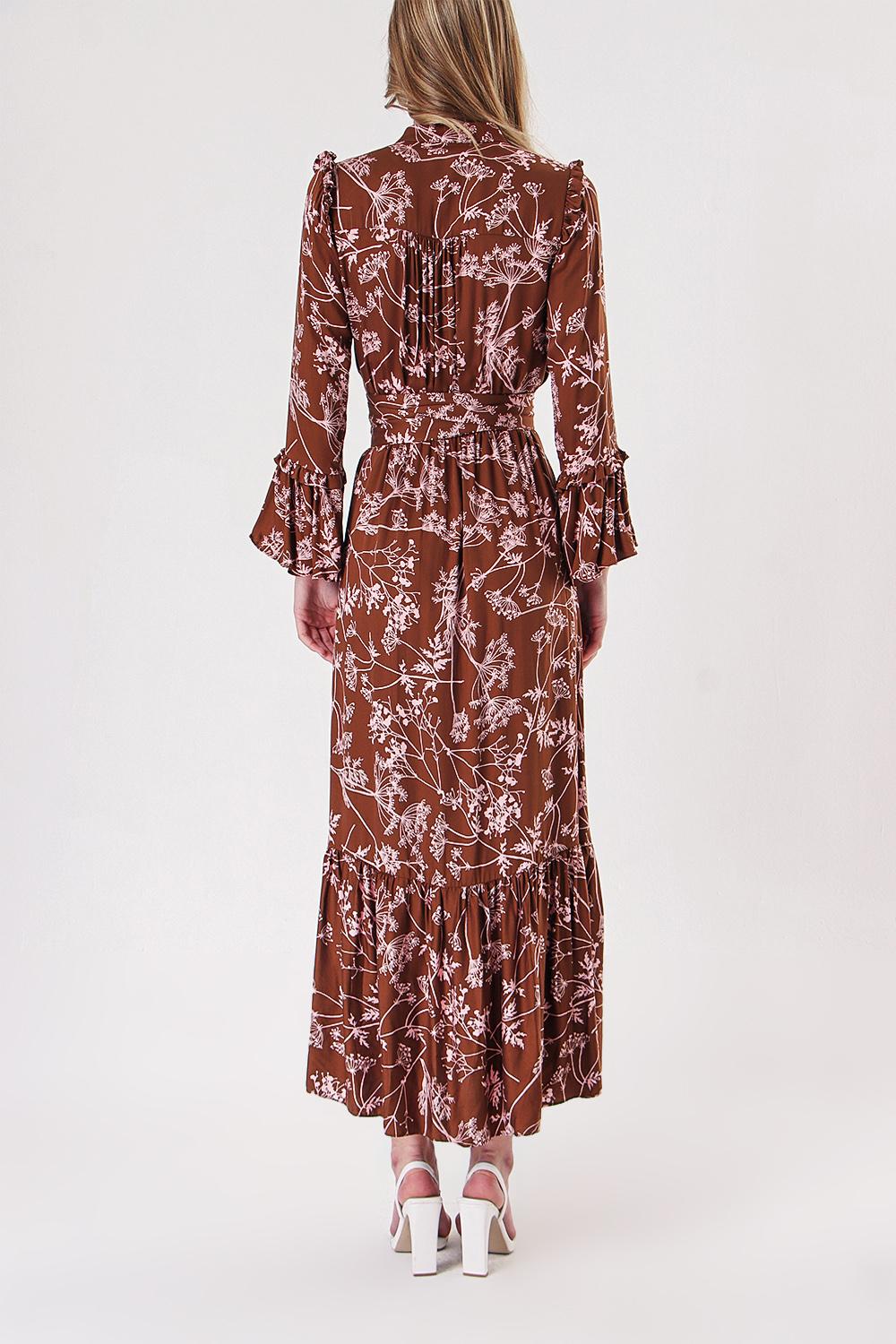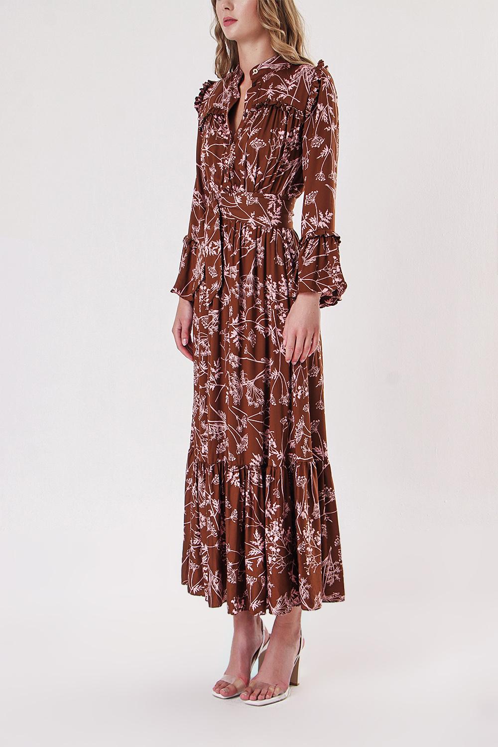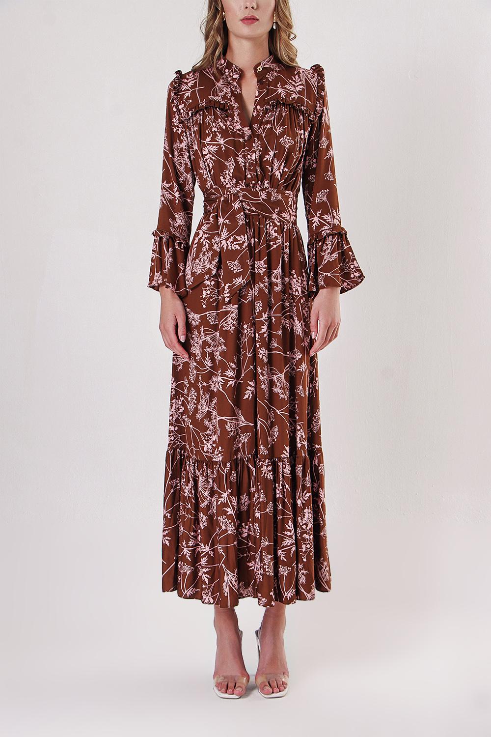 Kahve Beli lastikli büzgülü uzun elbise 94251