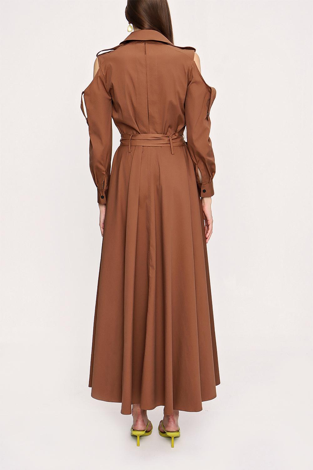Kahve Fermuar ve çıt çıt detaylı uzun elbise 93931