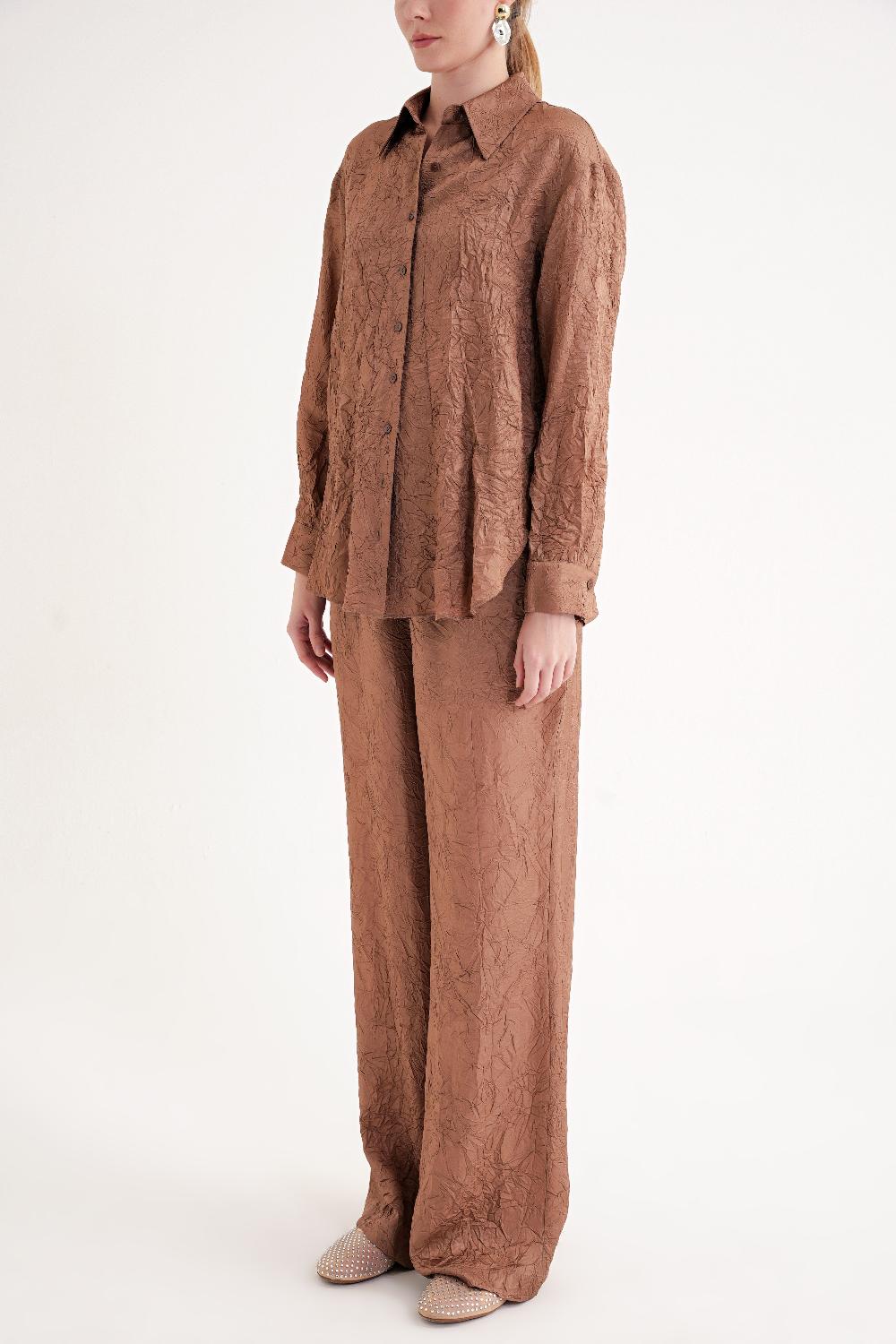 Kahve Kraşlı pantalon gömlek takım 12352