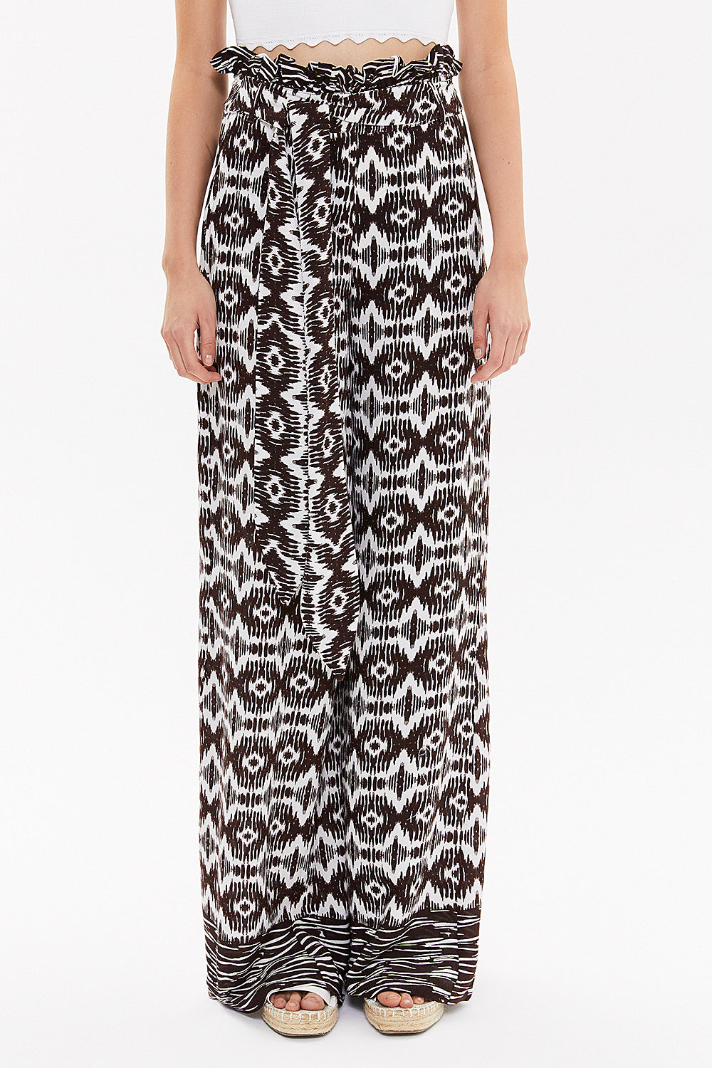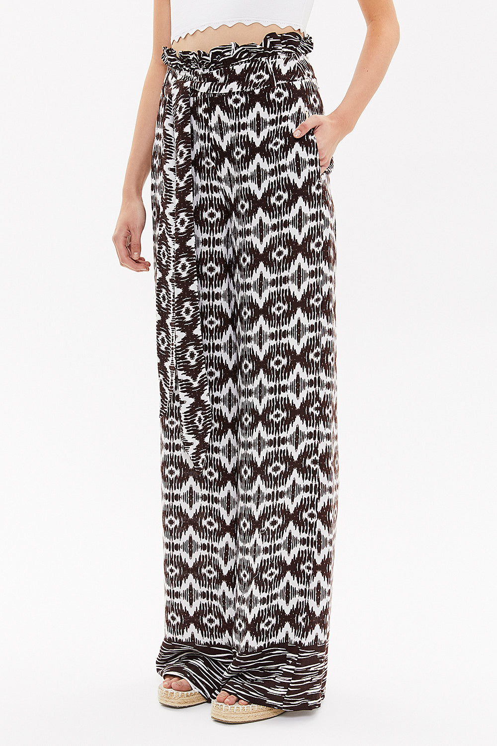 Kahve Yüksek bel bol kesim pantolon 41302