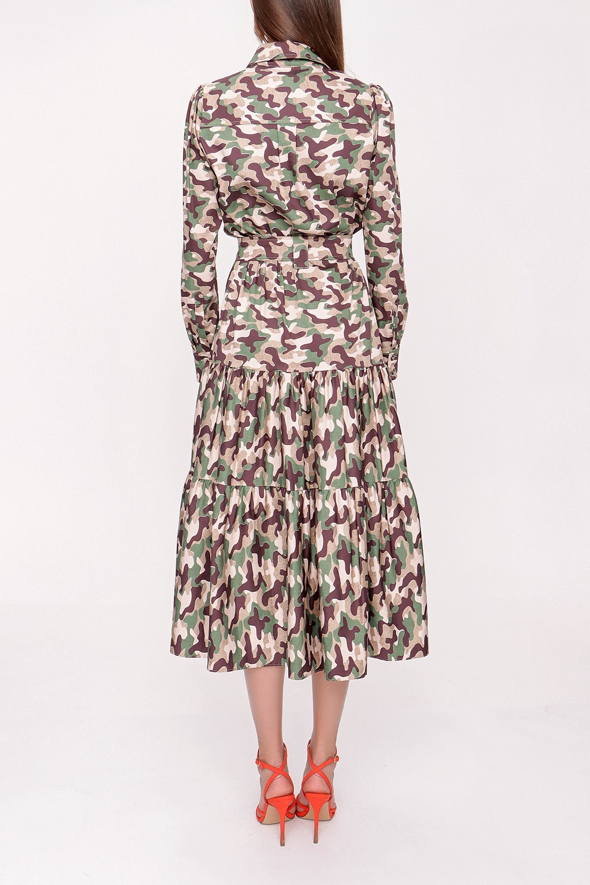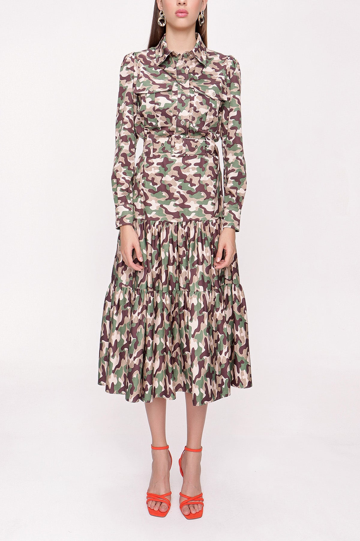 Kamuflaj Büzgülü ve kemer detaylı elbise 93994