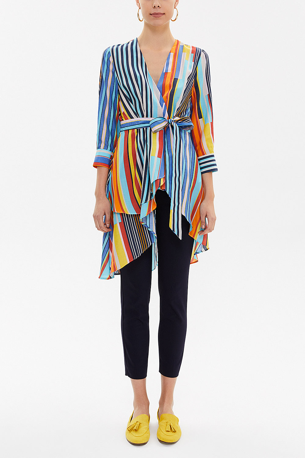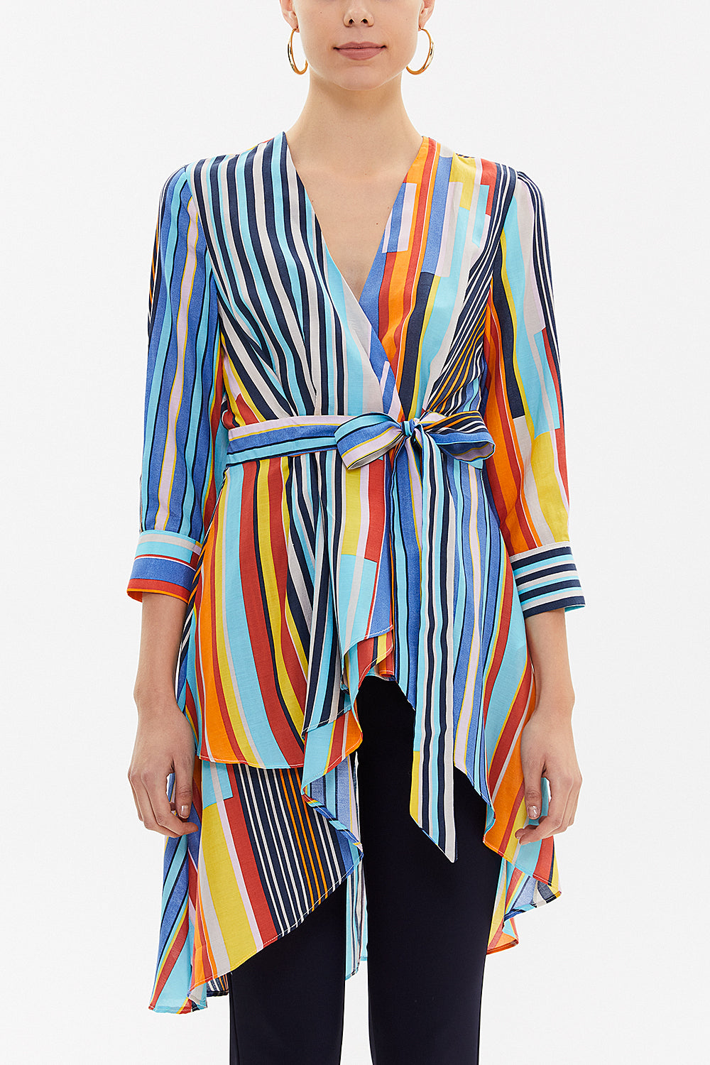 Karışık Renkler Asimetrik kesim poplin gömlek 10715