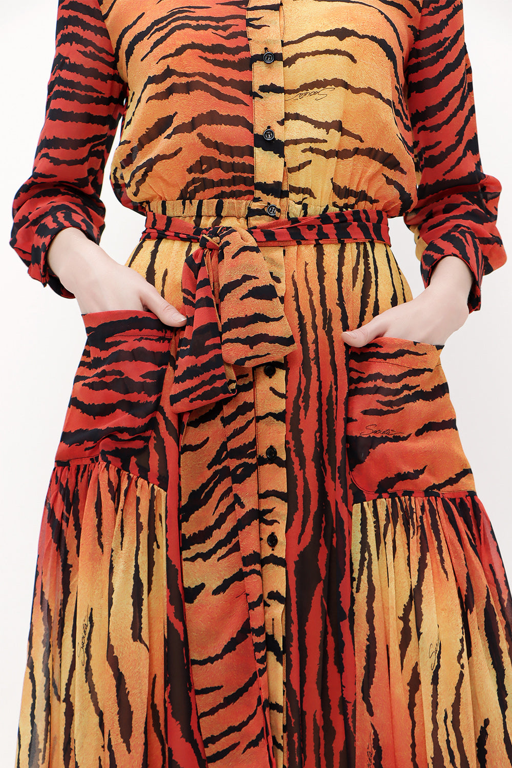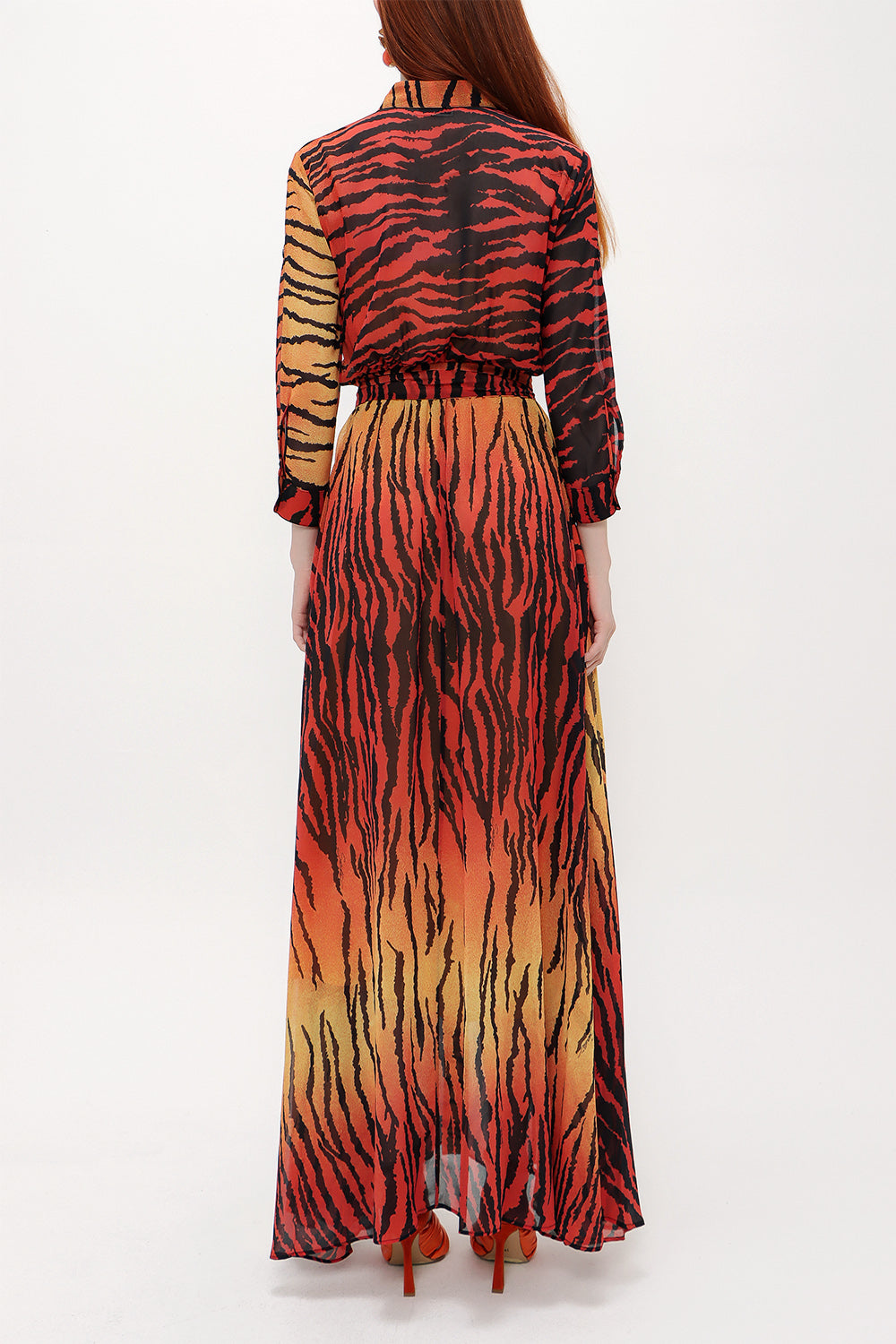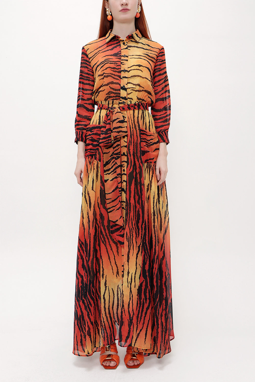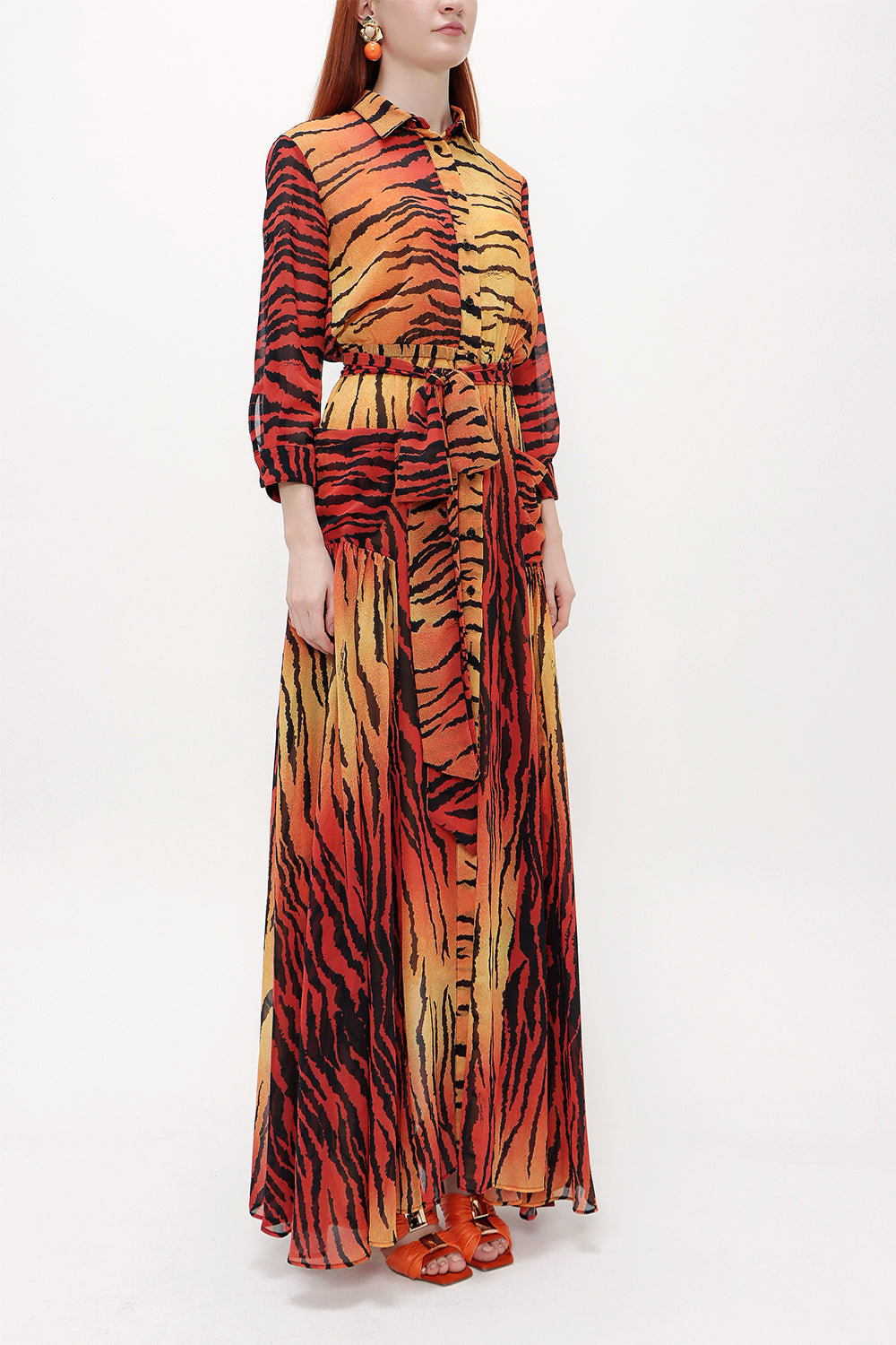 Kiremit Şifon bol kesim uzun elbise 92438
