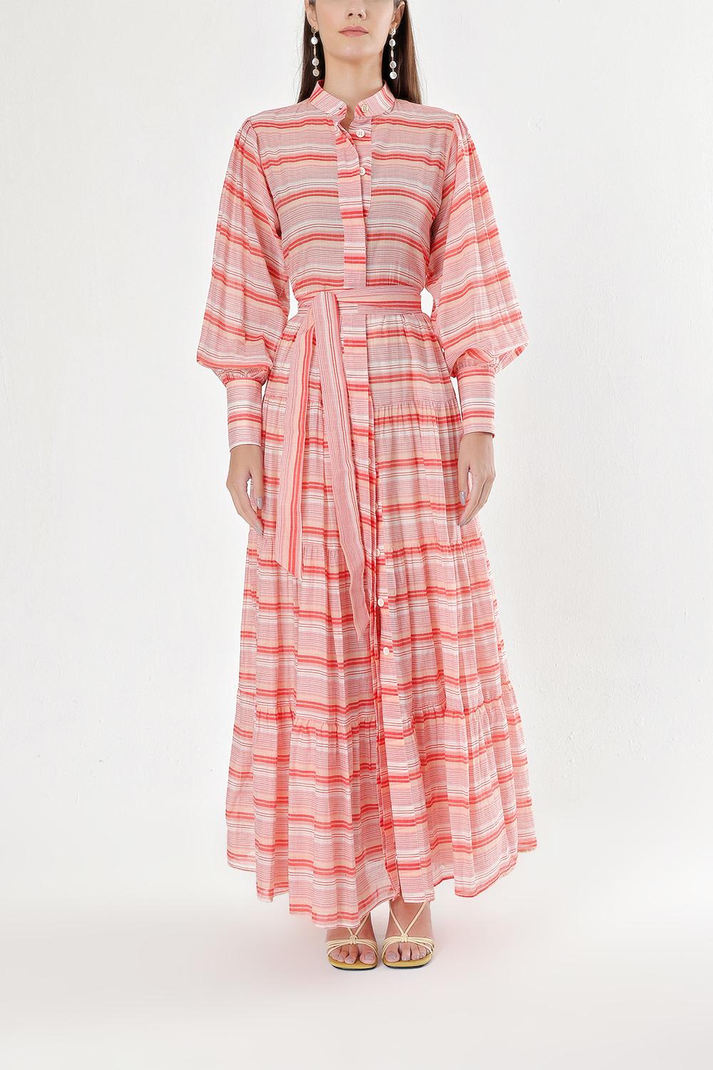 Kırmızı Balon kollu büzgülü gömlek elbise 94301
