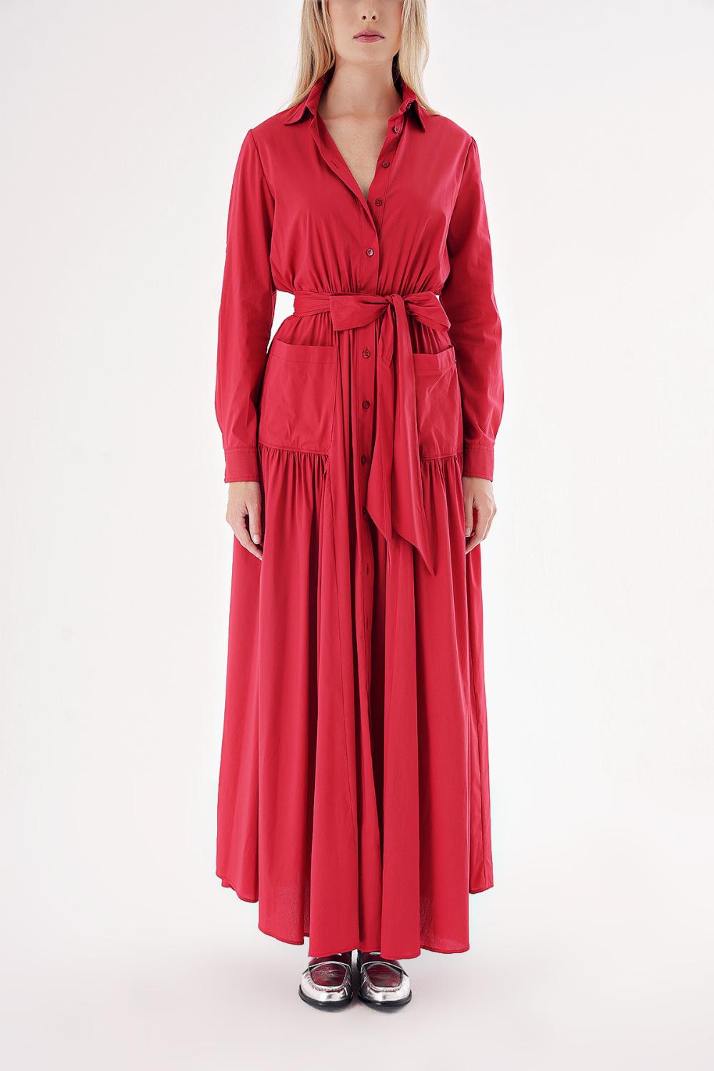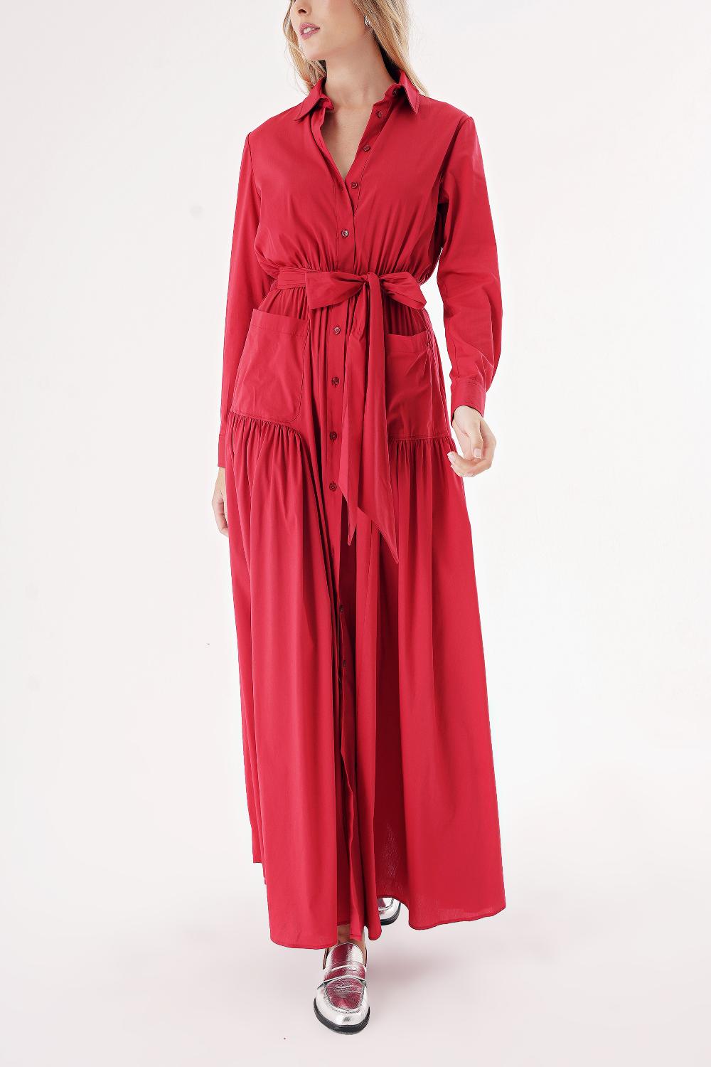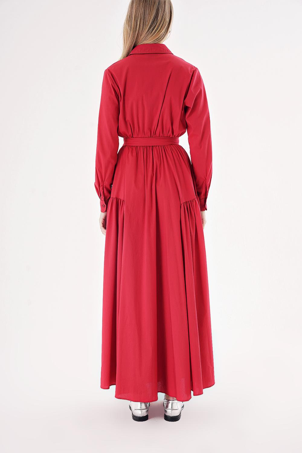Kırmızı Beli lastikli uzun gömlek elbise 94498
