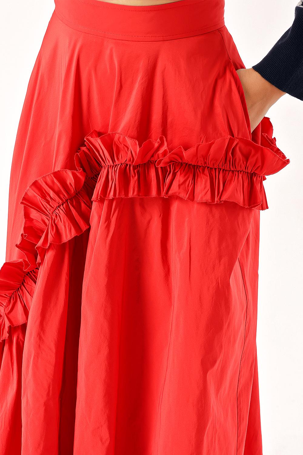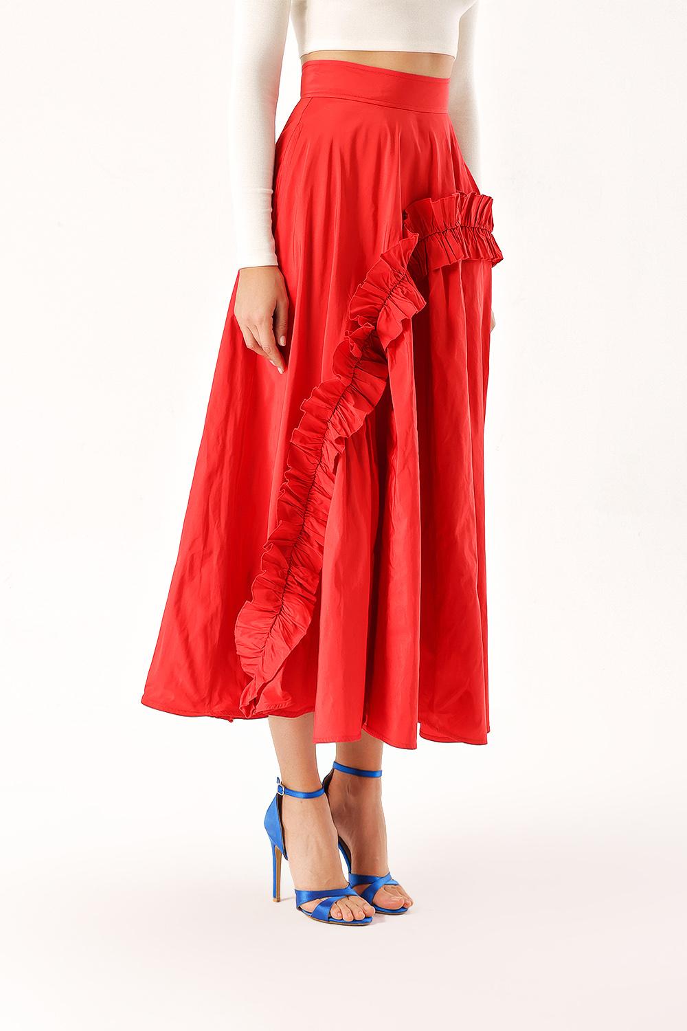 Kırmızı Büzgü detaylı midi boy valonlu etek 81241