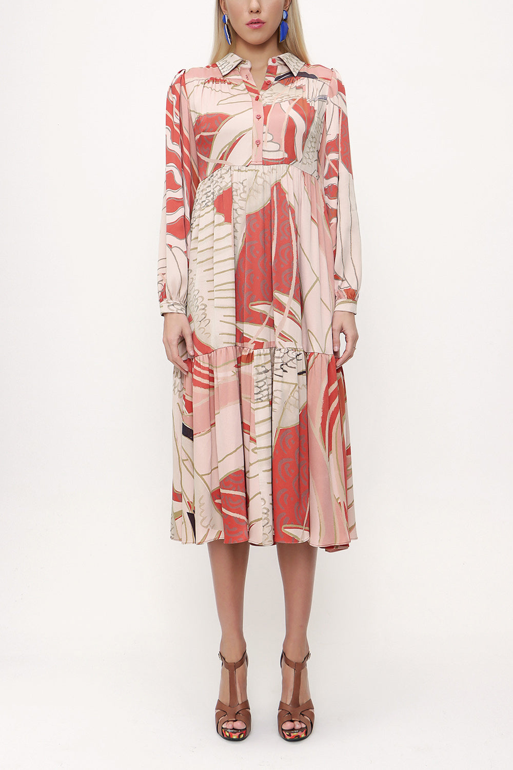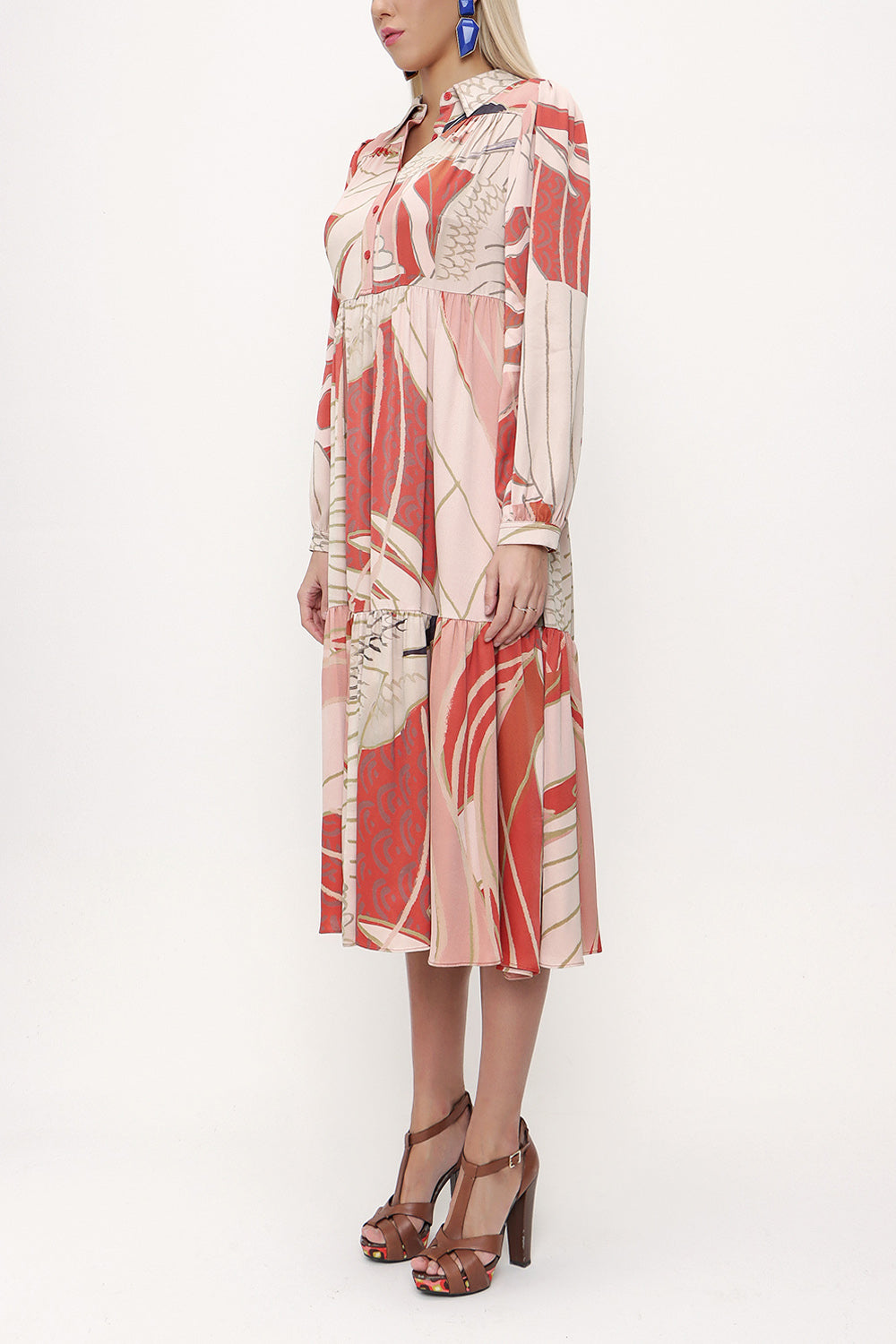 Kırmızı Büzgülü bol kesim elbise 93736