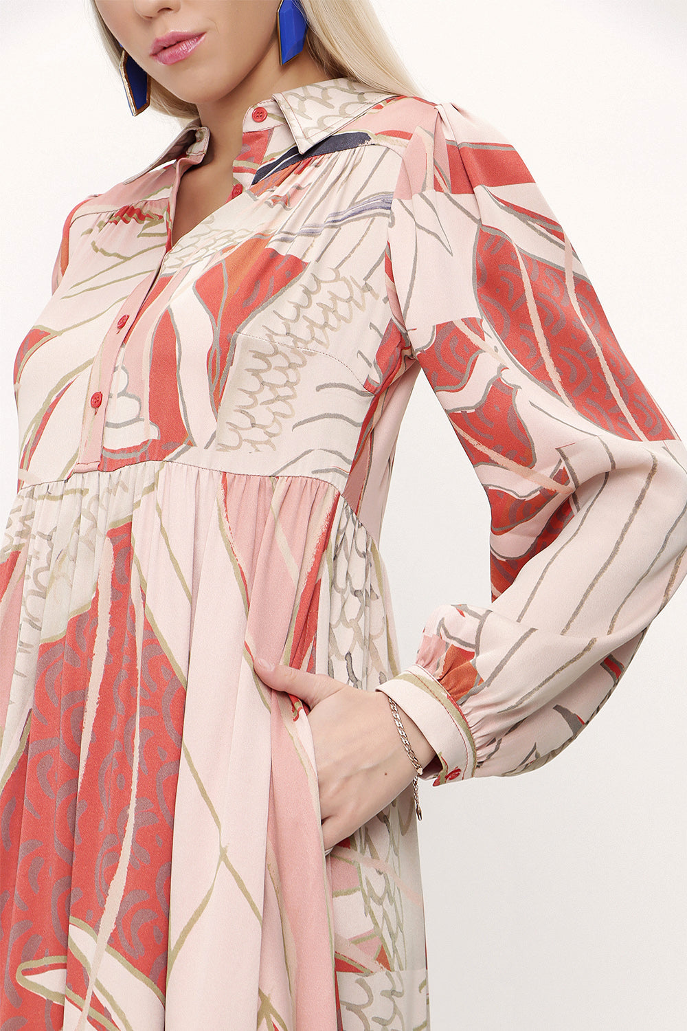 Kırmızı Büzgülü bol kesim elbise 93736