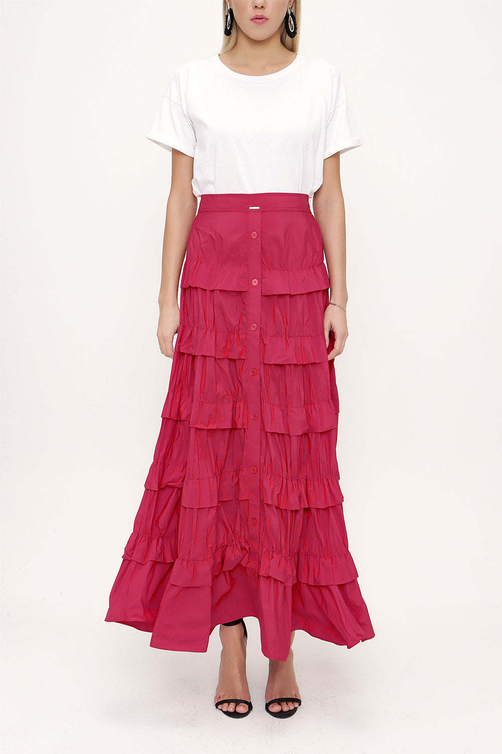Kırmızı Büzgülü kat kat etek 81168