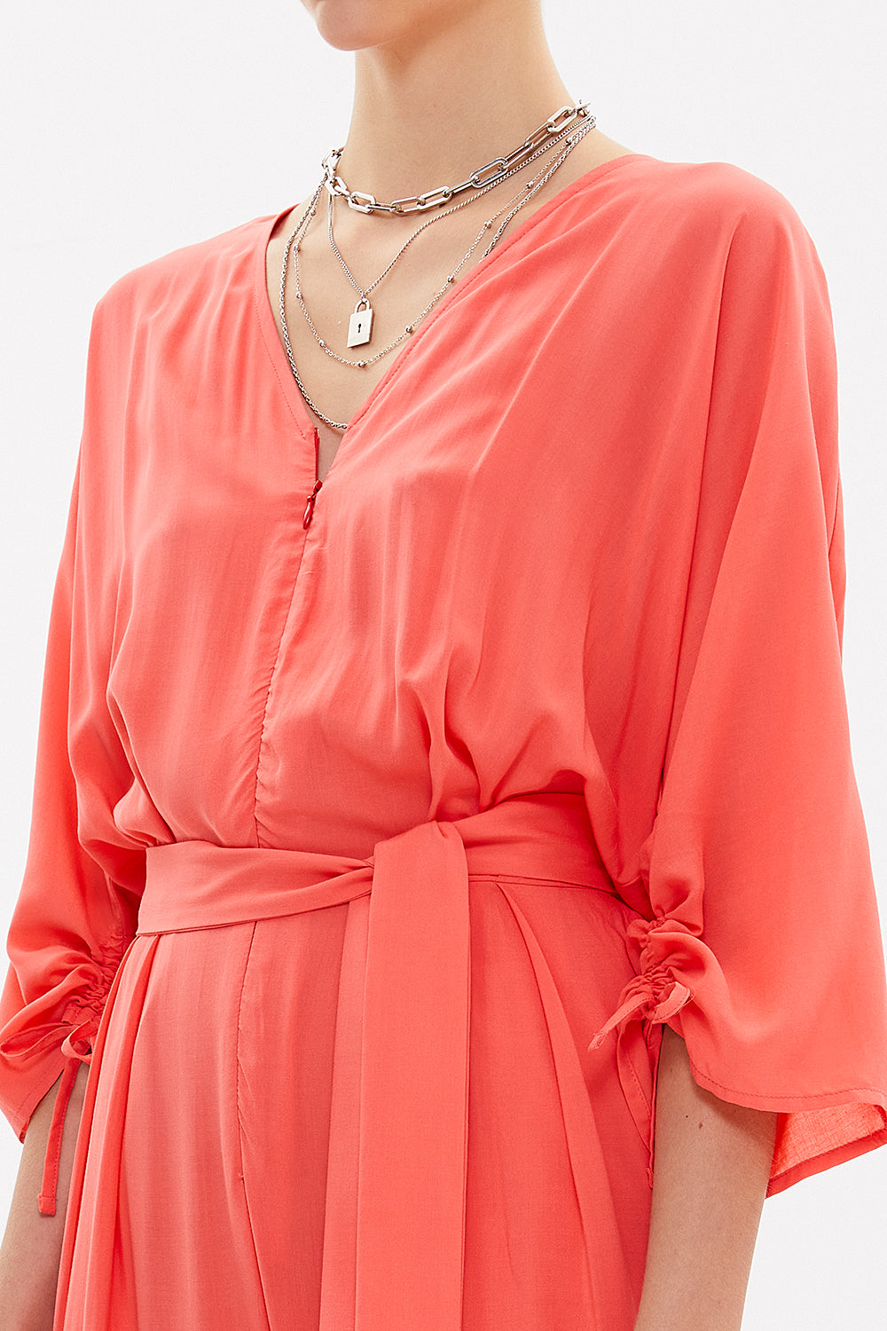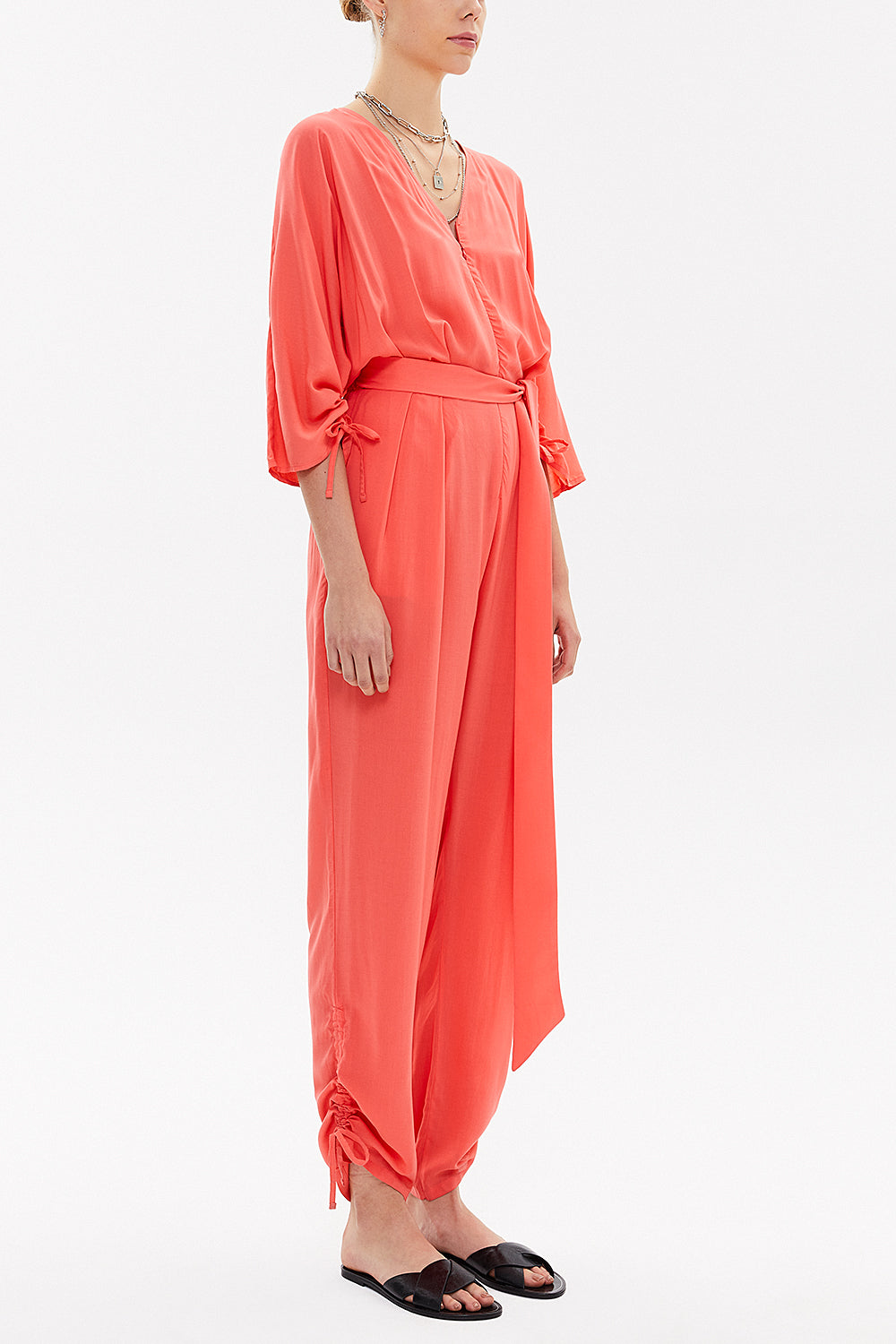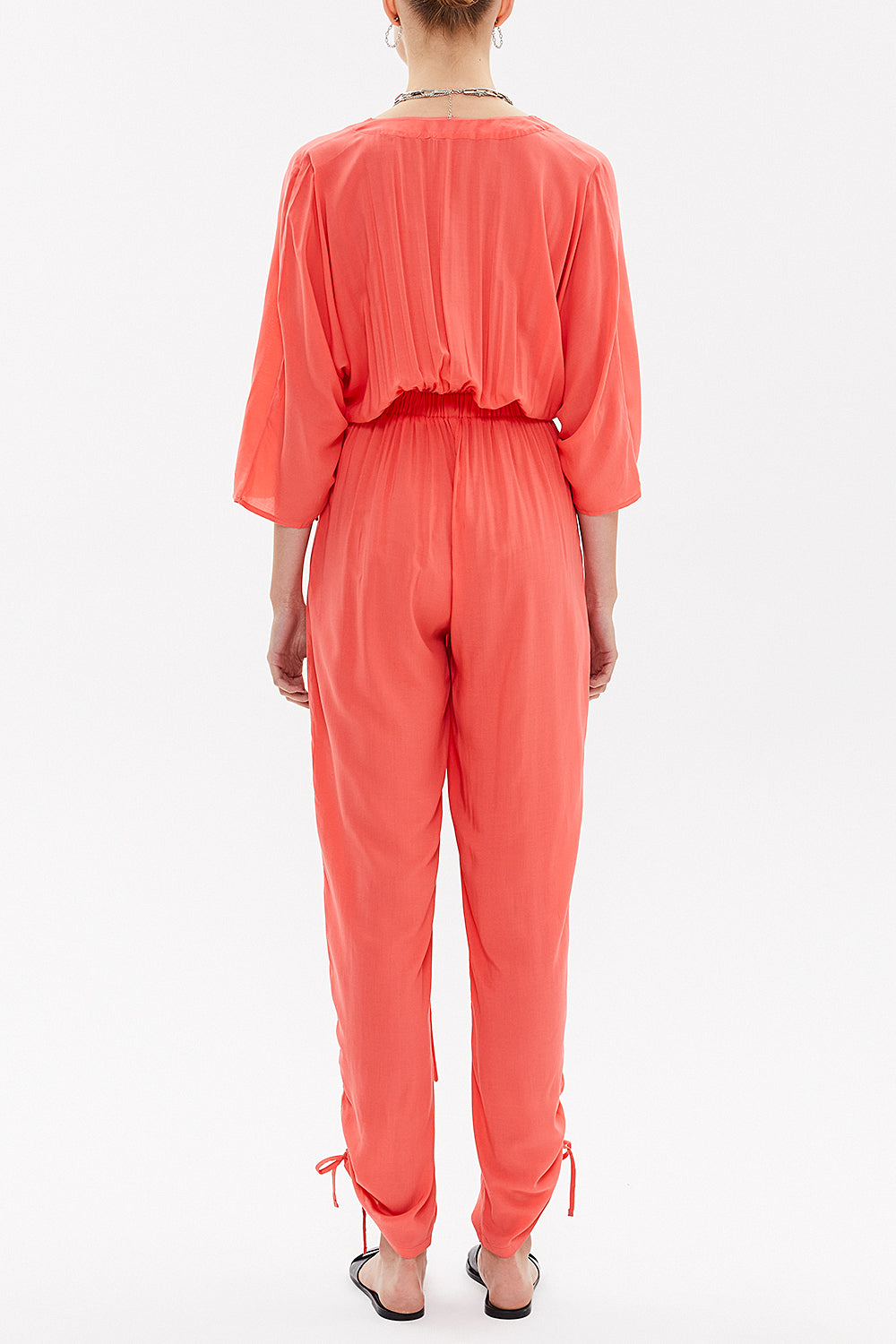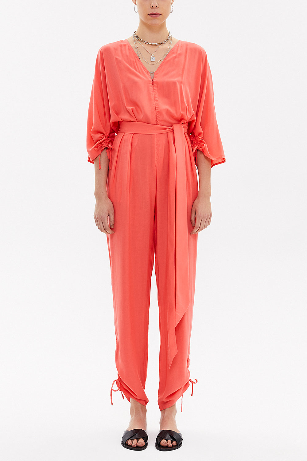 Kırmızı Büzgülü ve fermuarlı tulum 10080