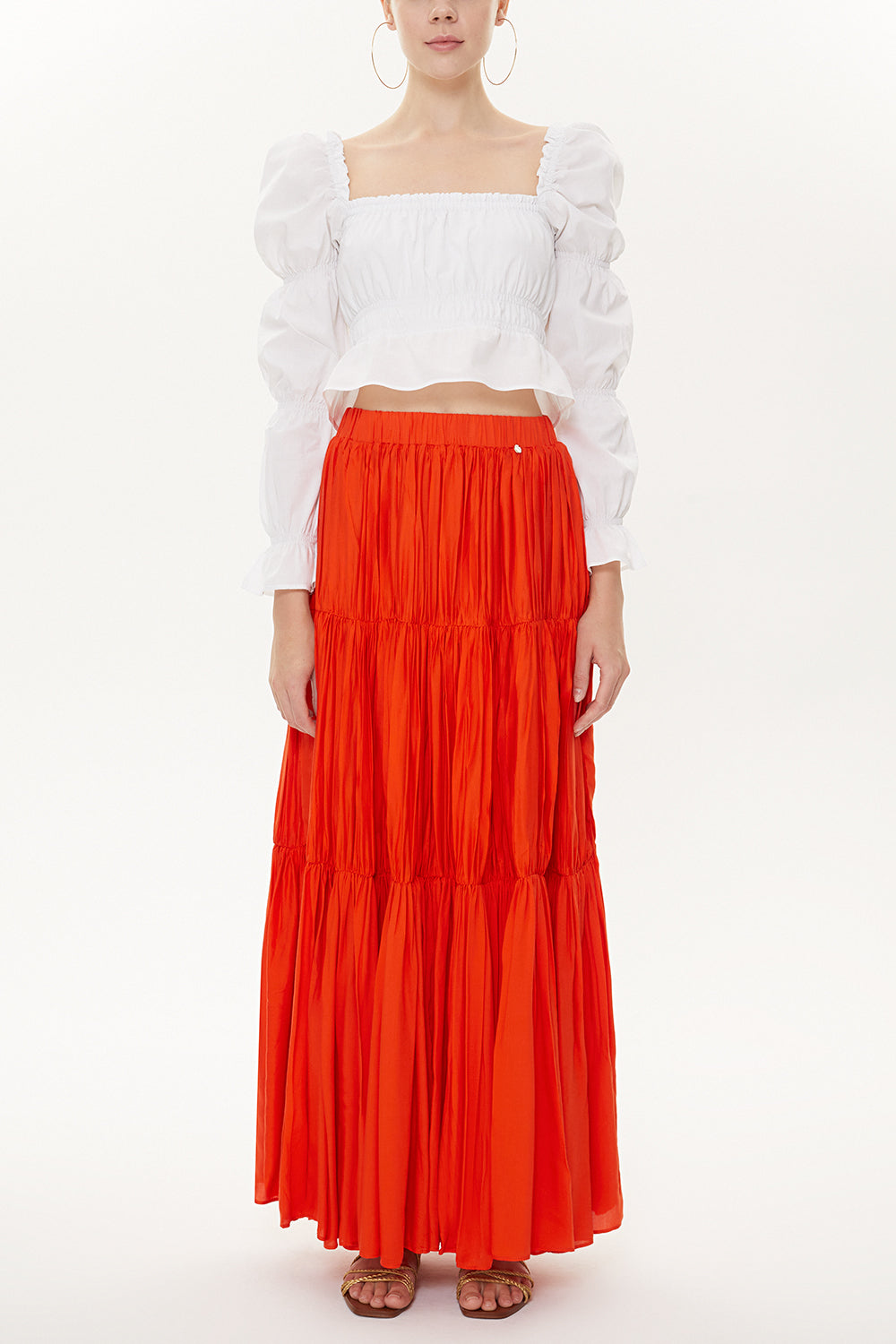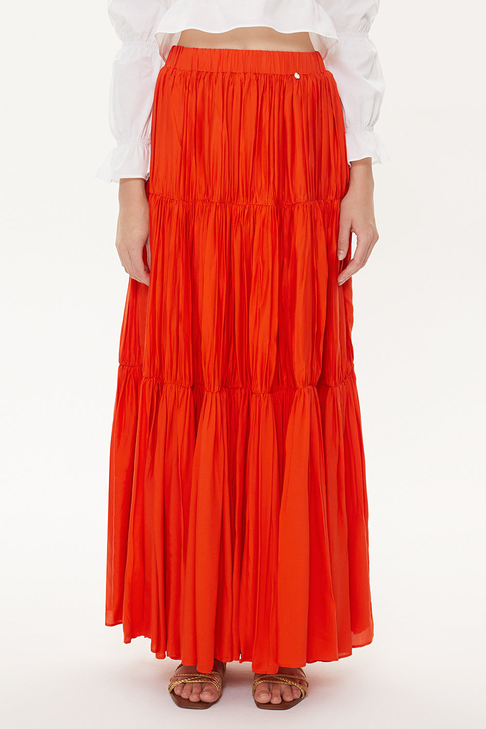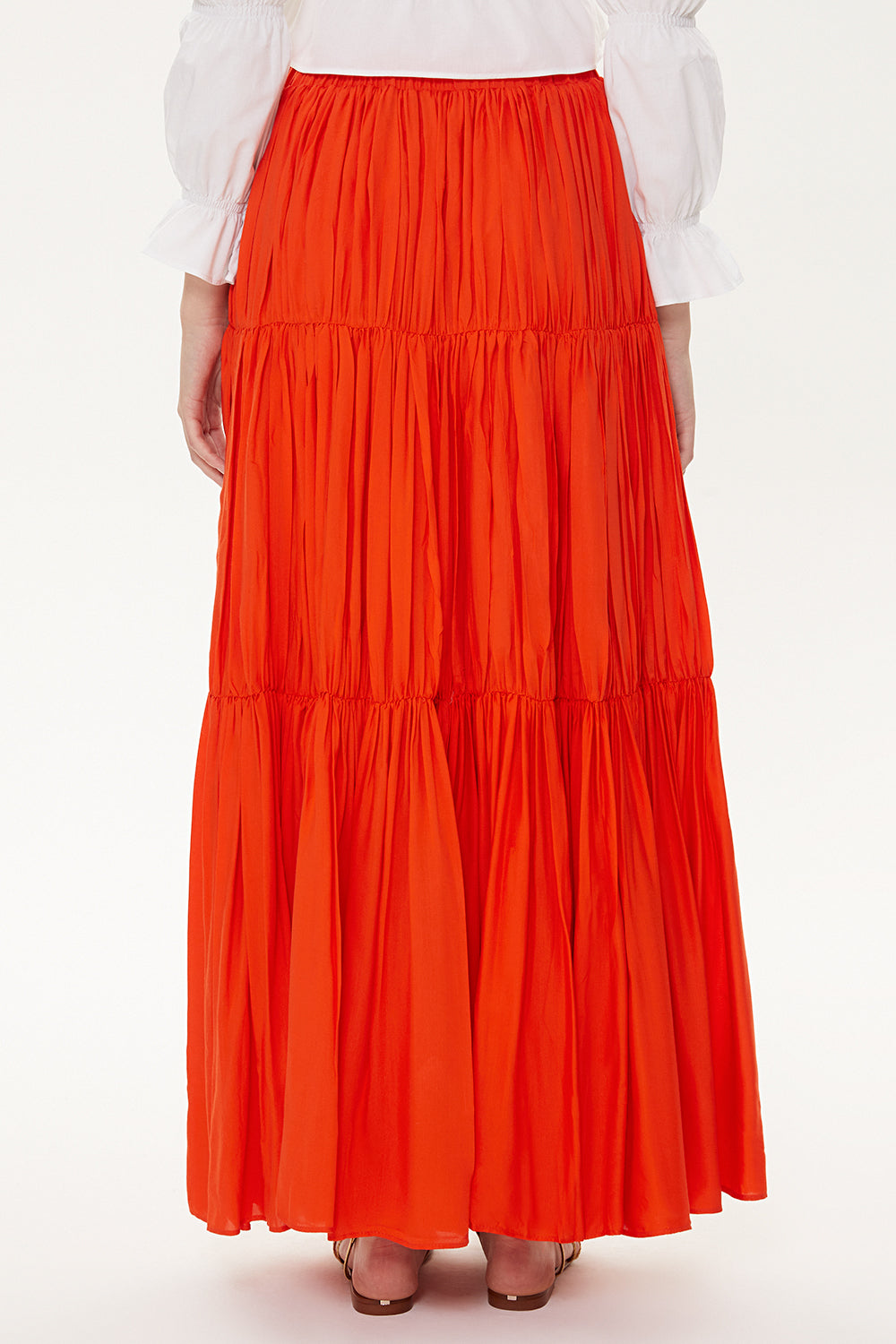 Kırmızı Lastikli büzgülü uzun etek 81154