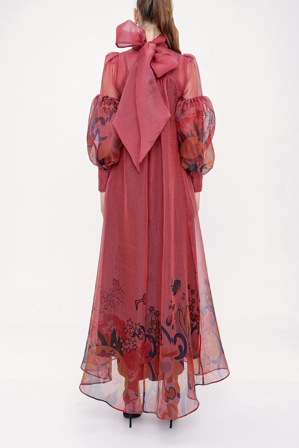 Kırmızı Yakası bağlamalı organze elbise 93795