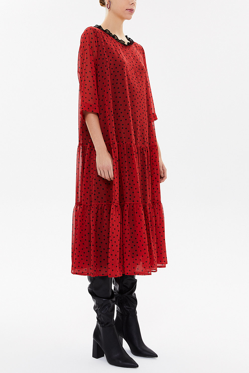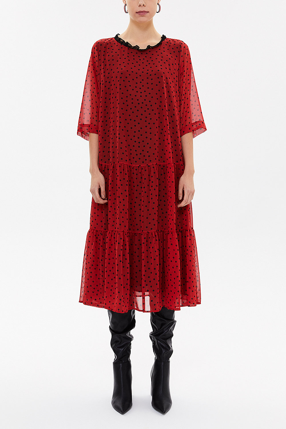 Kırmızı Yakası fırfırlı midi elbise 93188