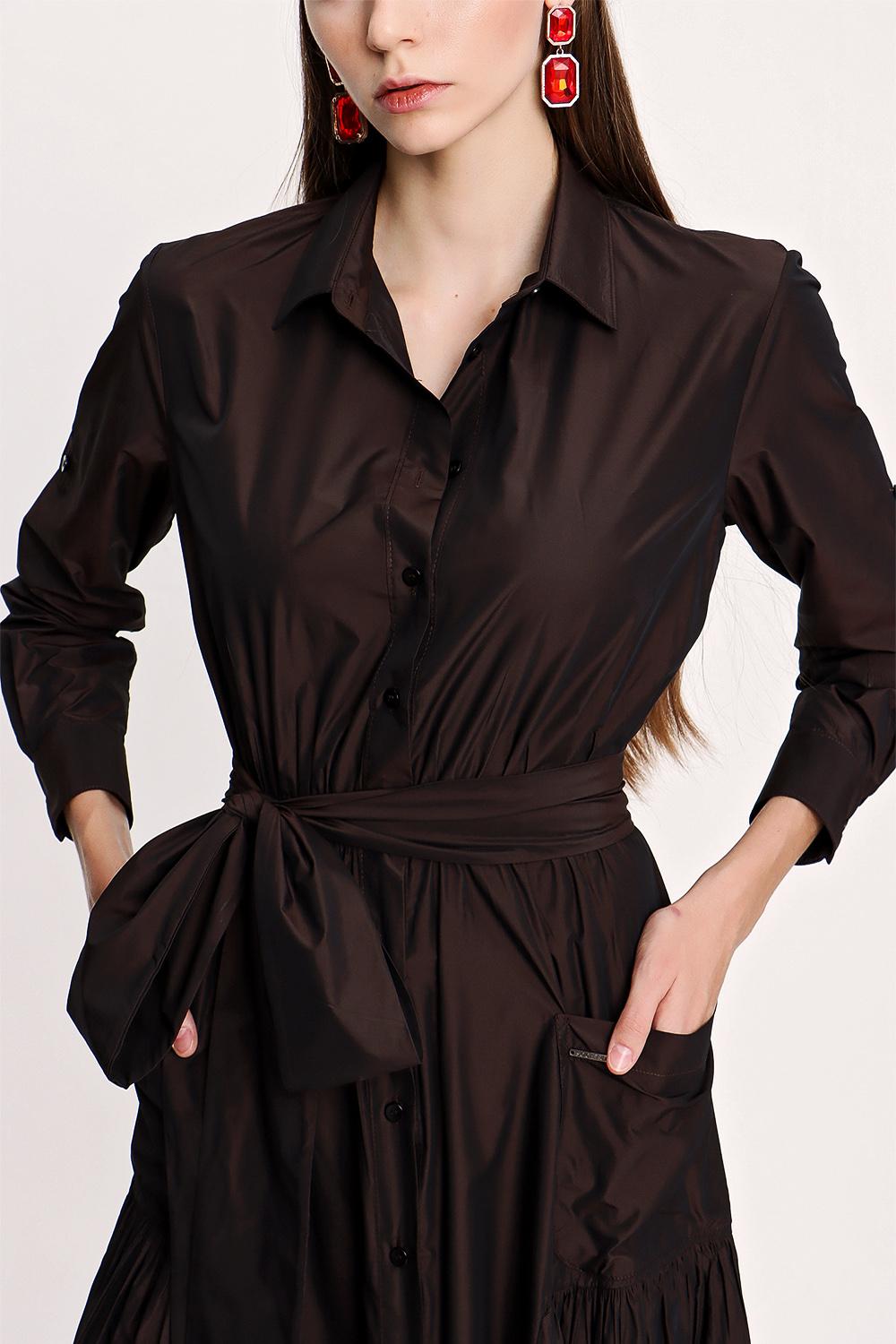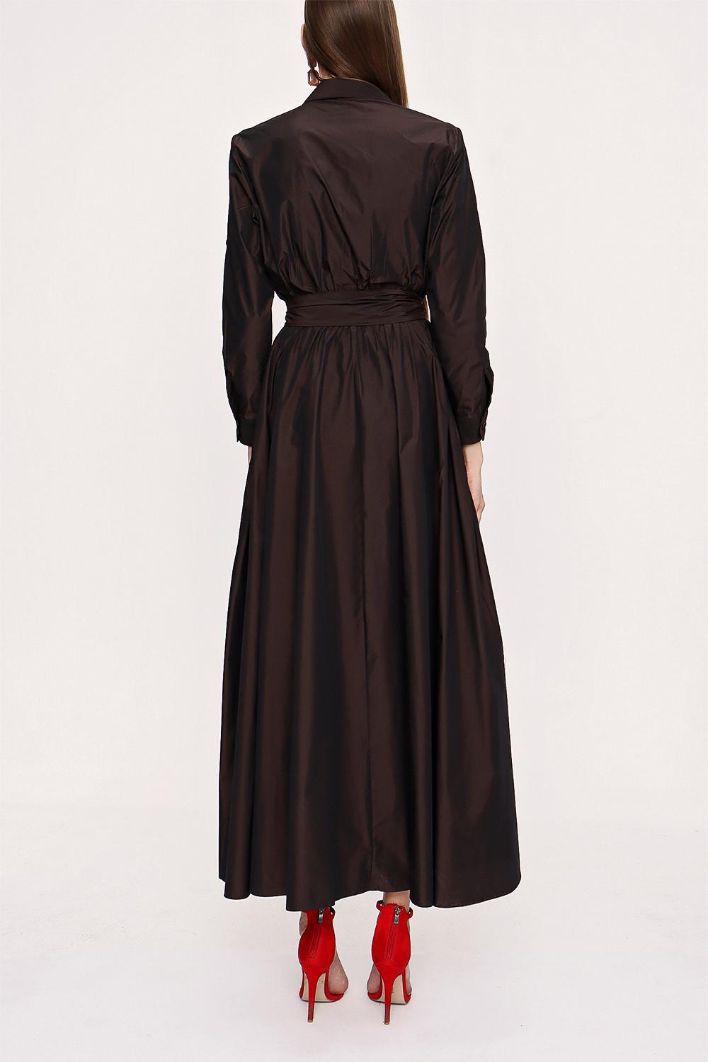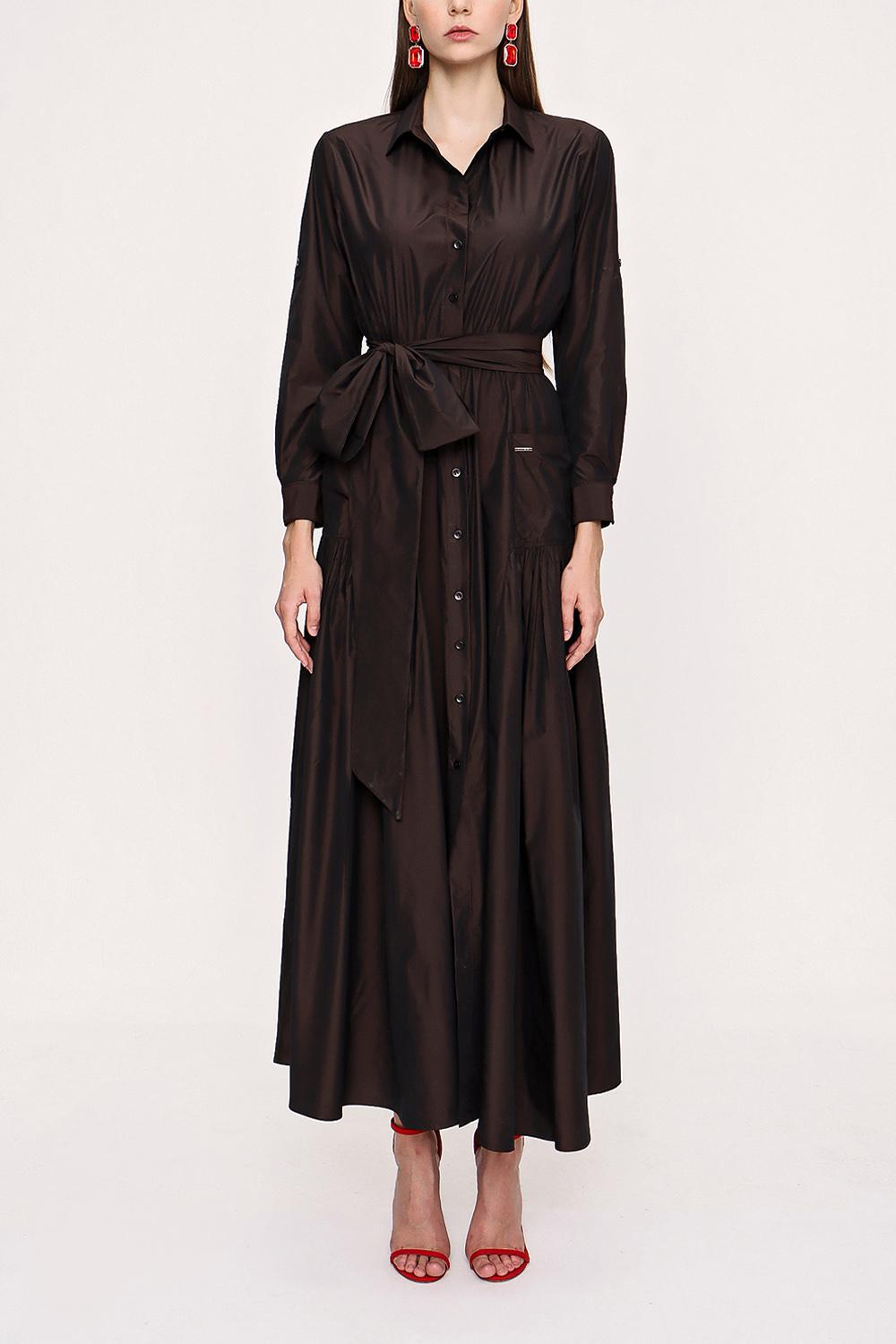 Koyu Kahve Büzgülü uzun tafta elbise 94032