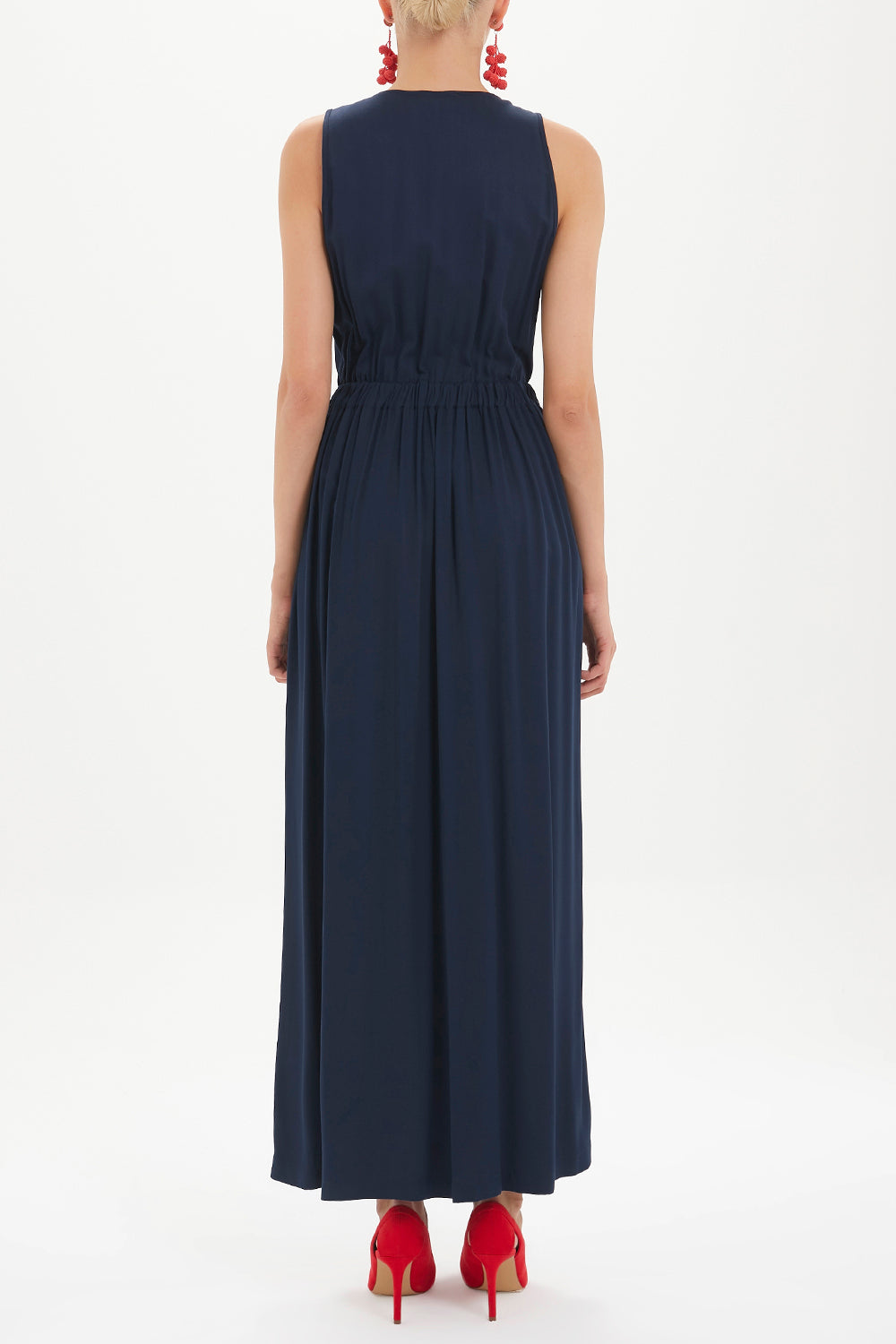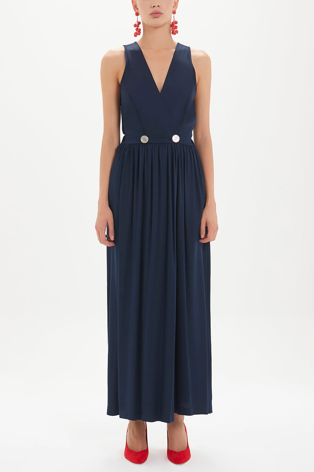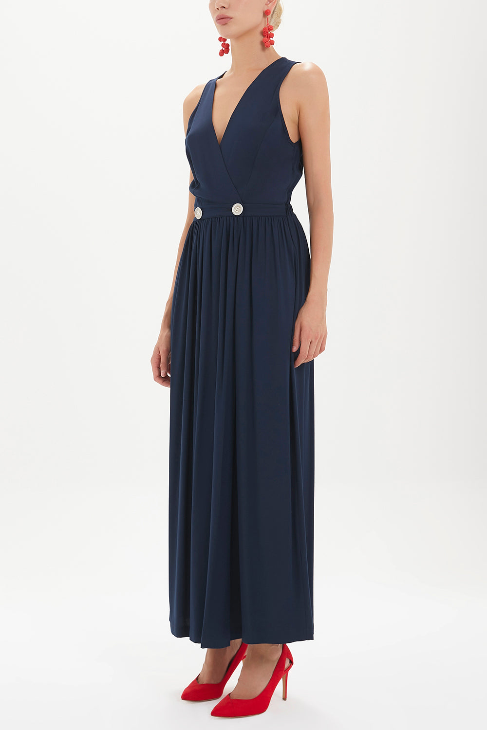 Lacivert Anvelop kapama kolsuz uzun elbise 92381