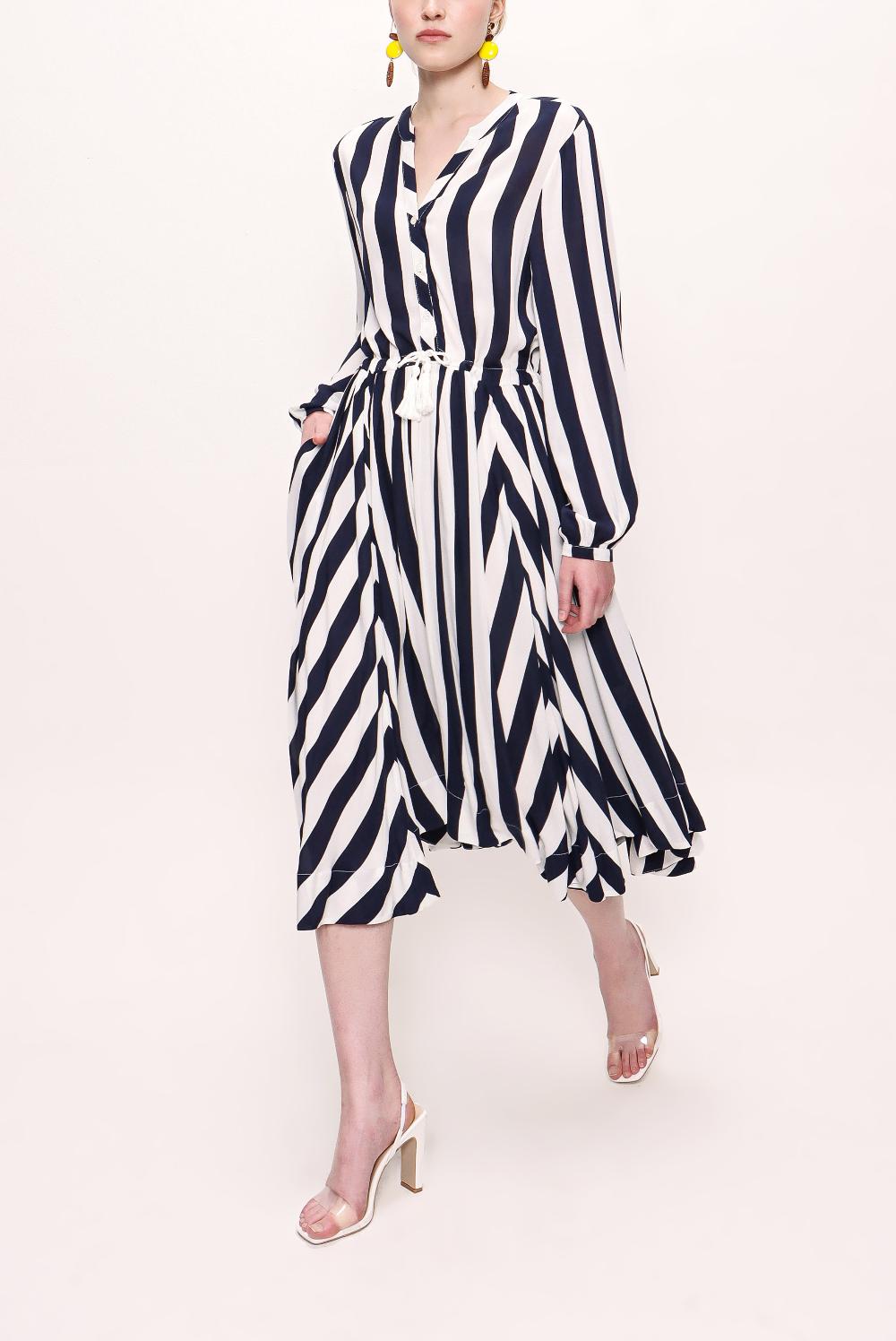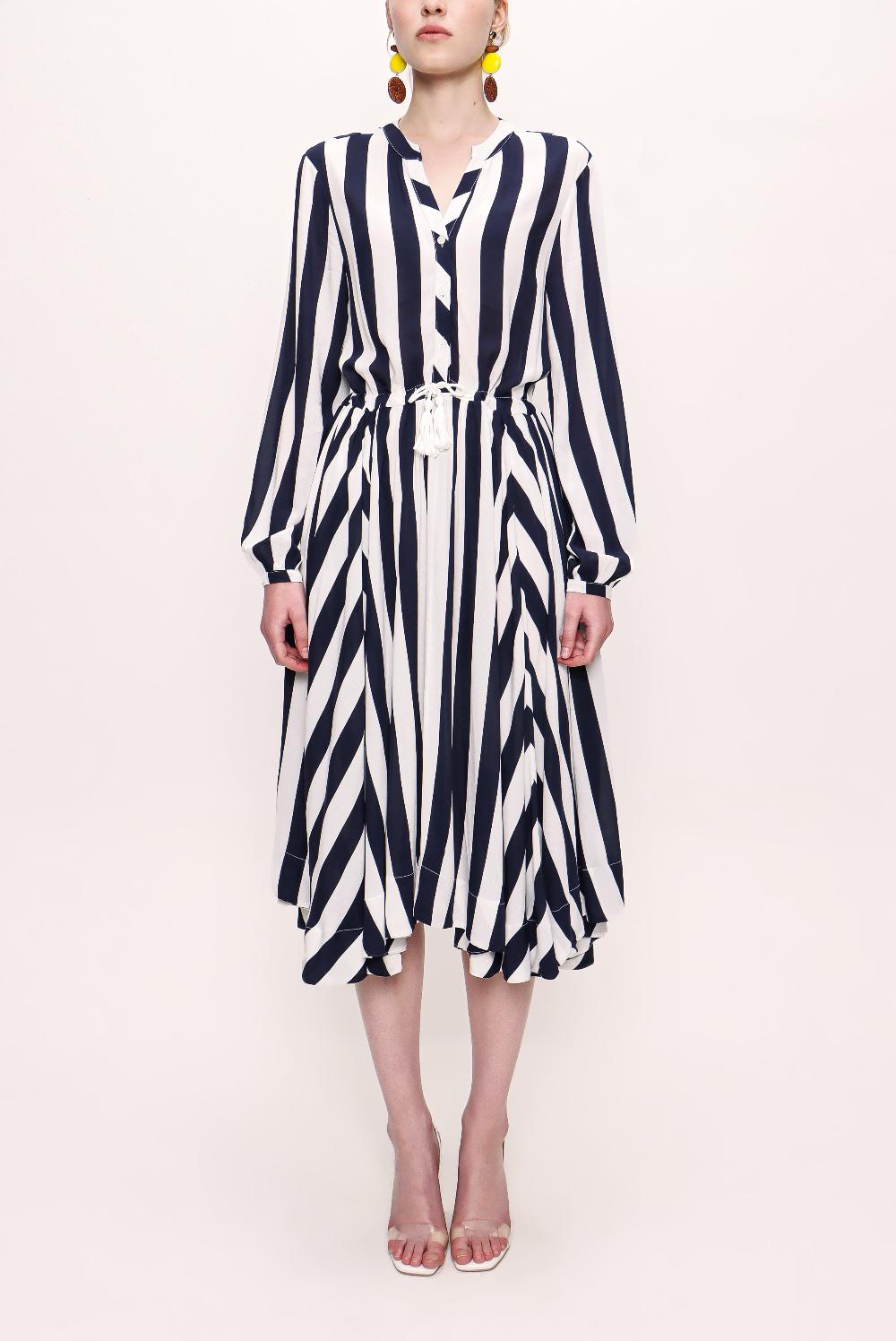 Lacivert Asimetrik kesim belden kemerli elbise 92854