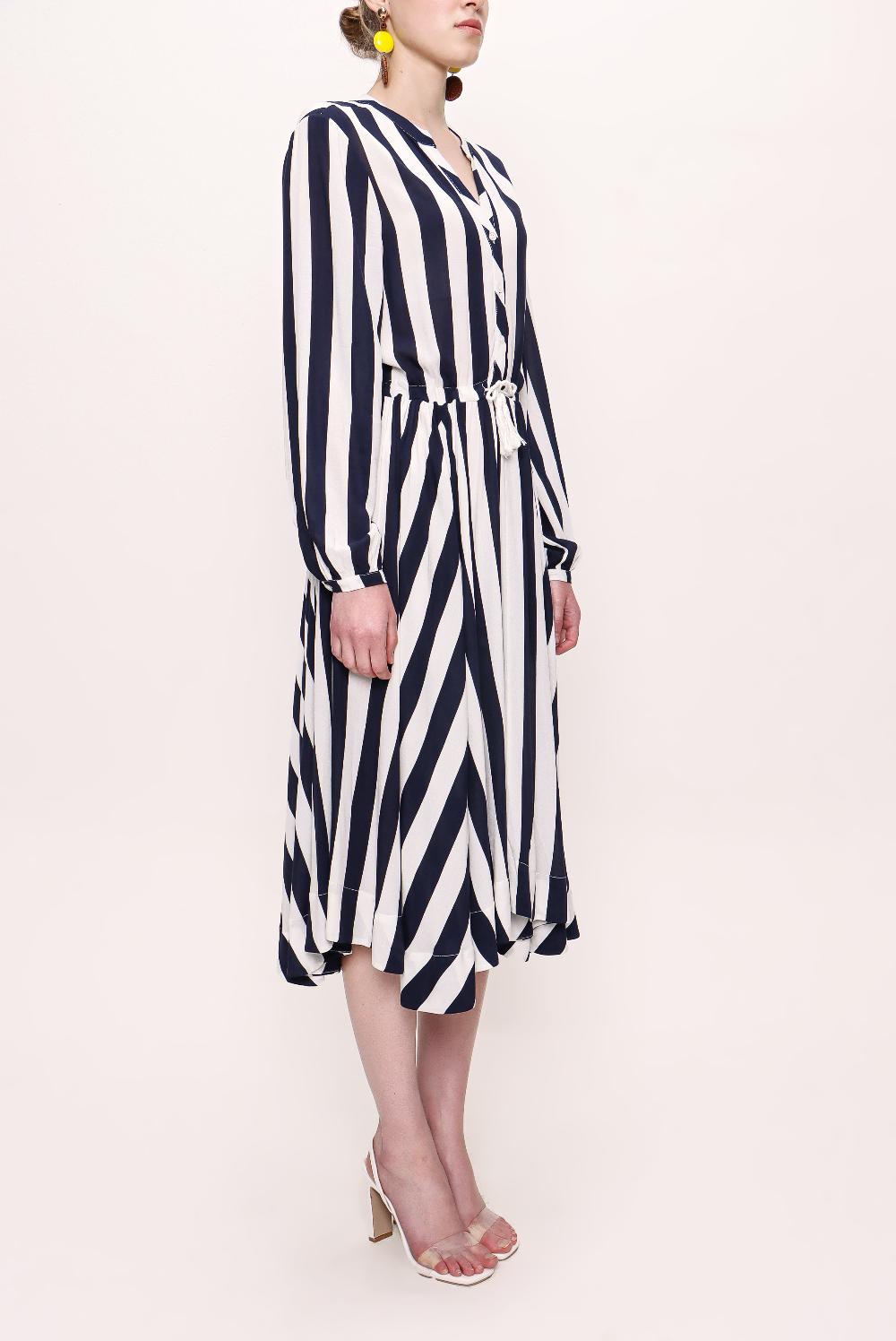 Lacivert Asimetrik kesim belden kemerli elbise 92854