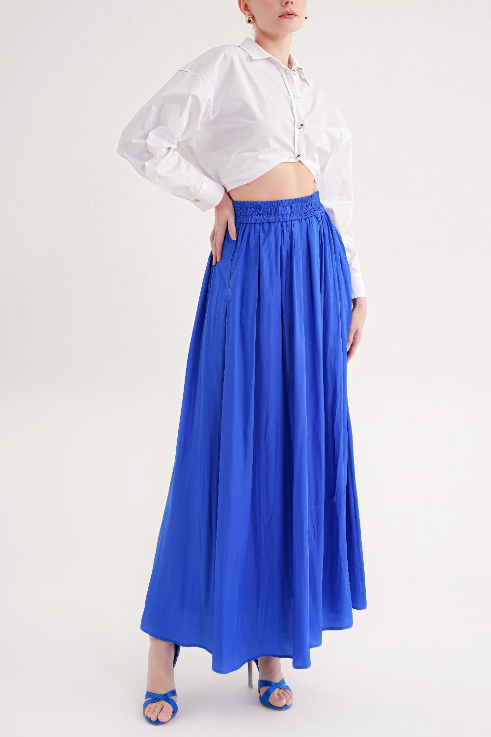Lacivert Beli lastikli uzun etek 81320