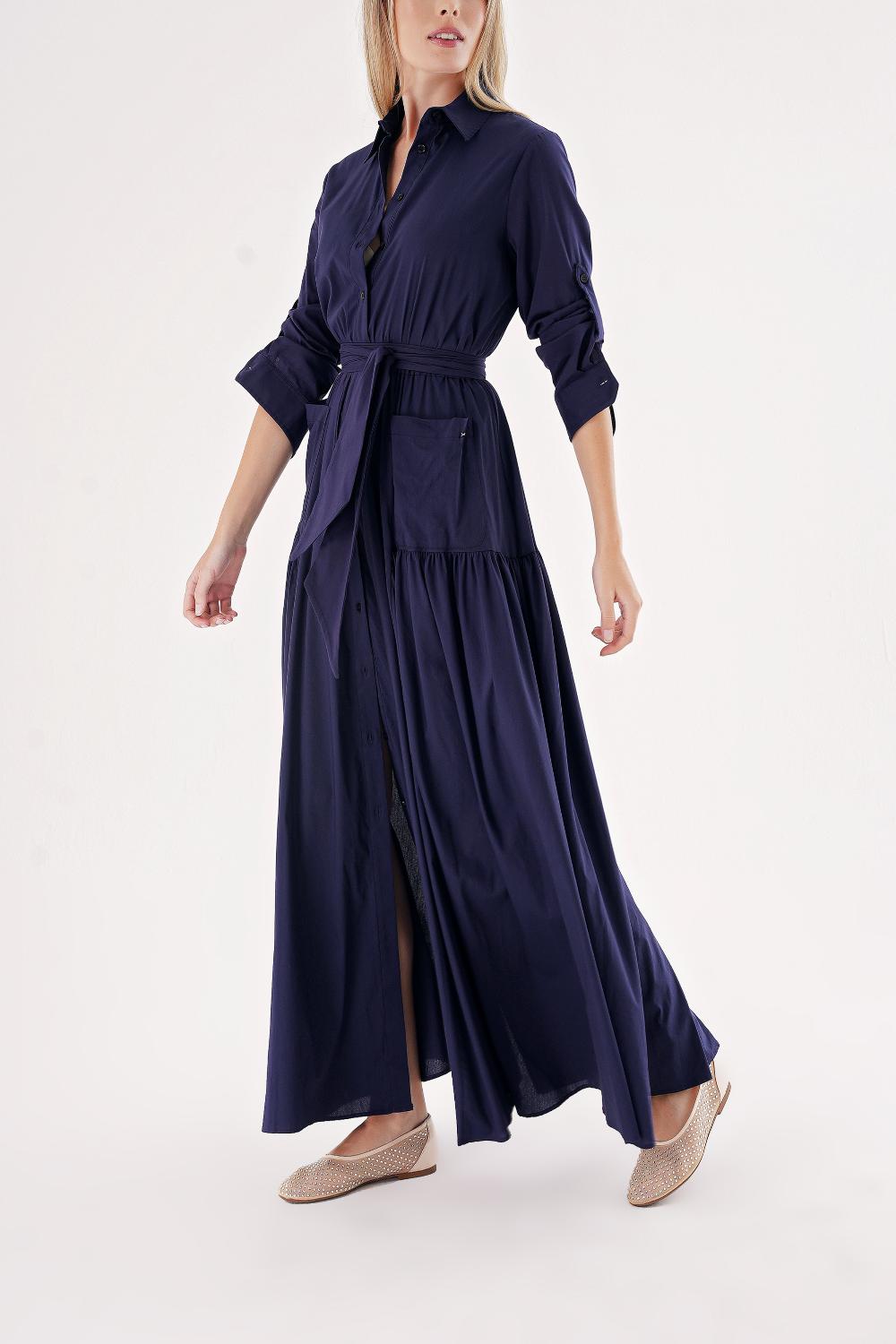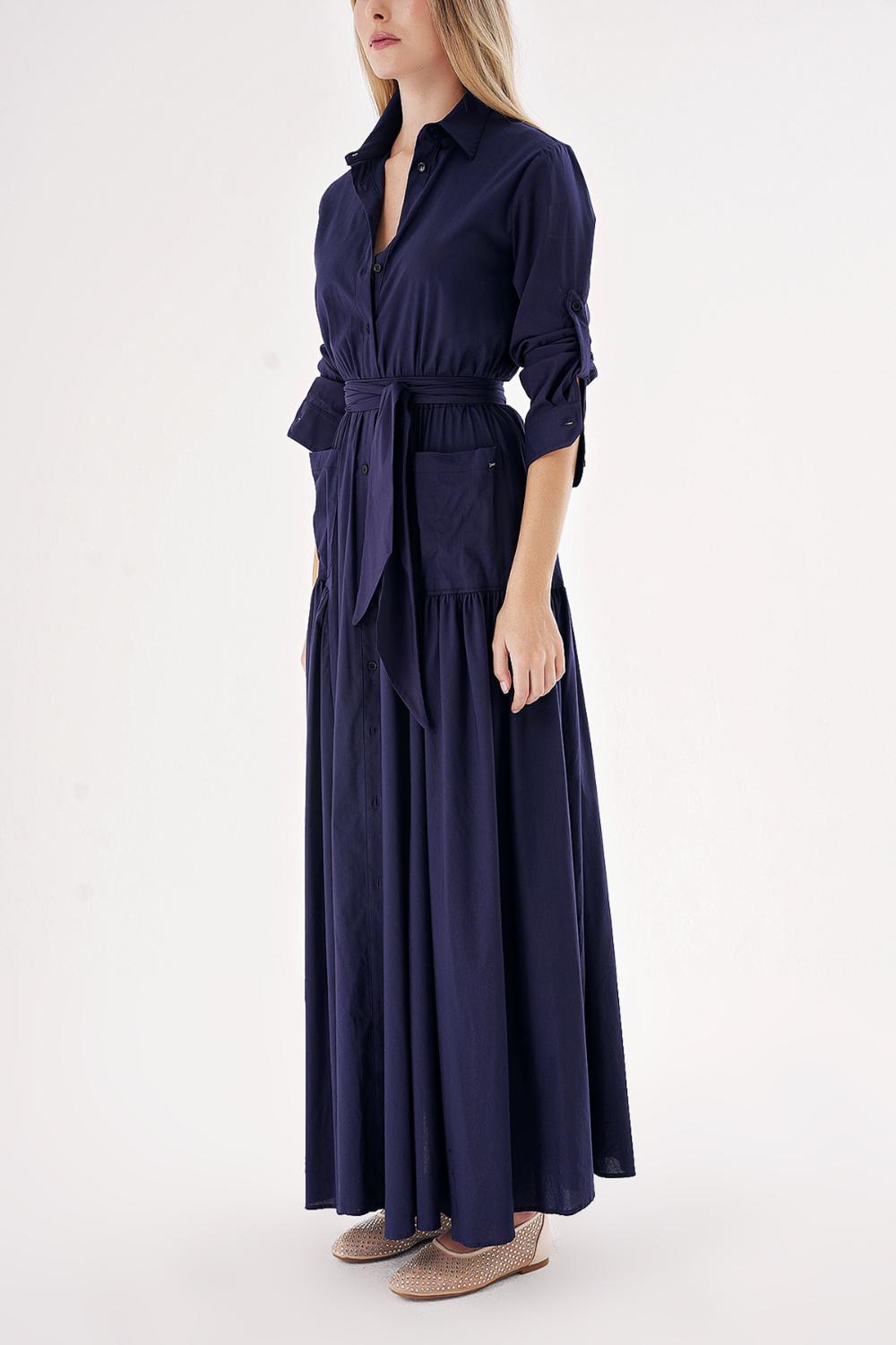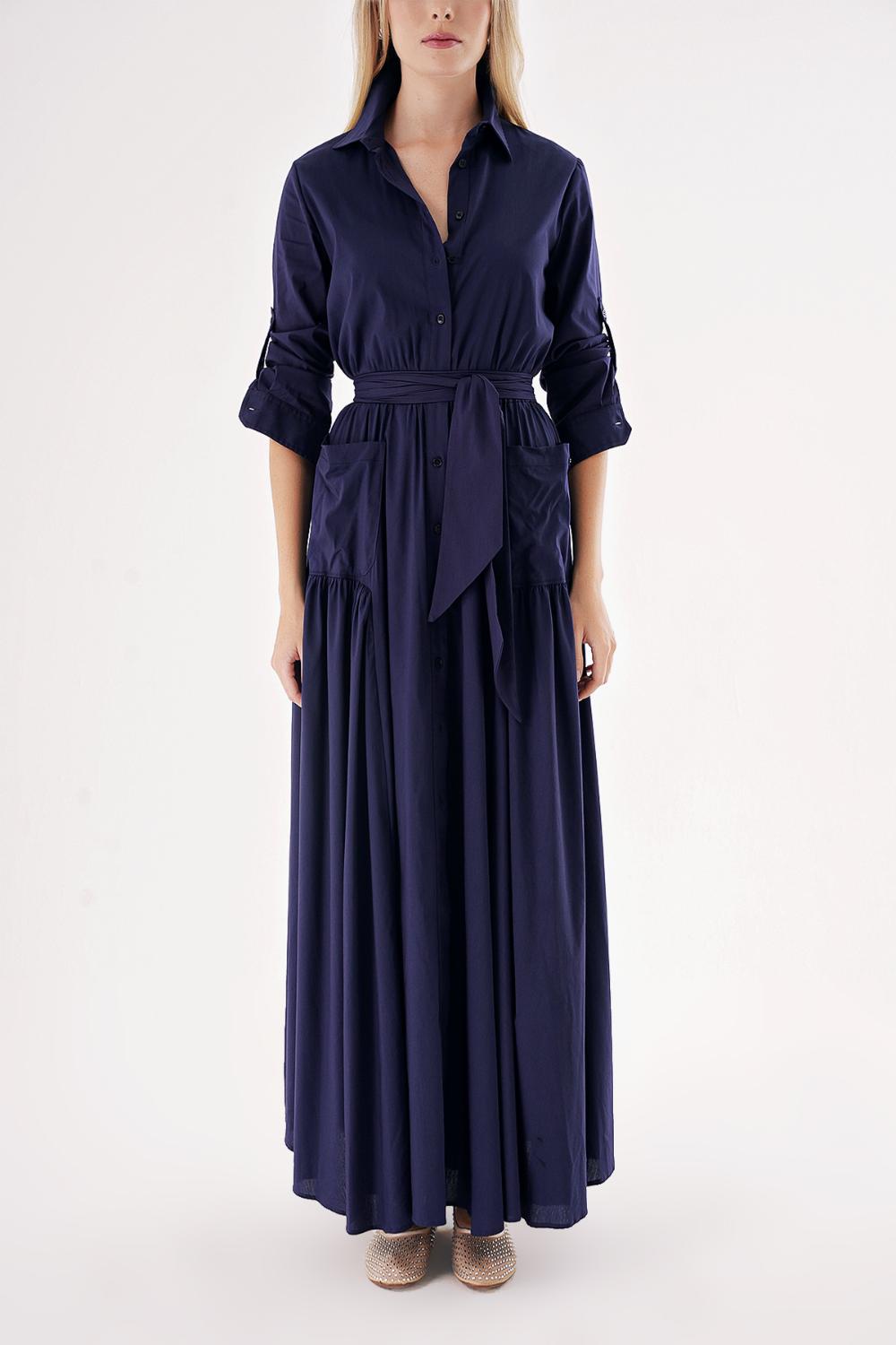 Lacivert Beli lastikli uzun gömlek elbise 94498