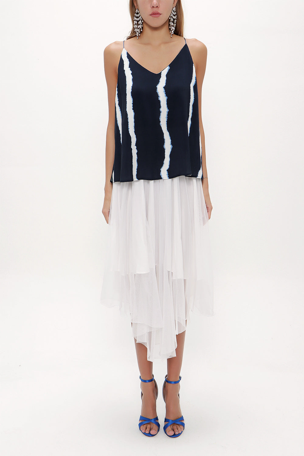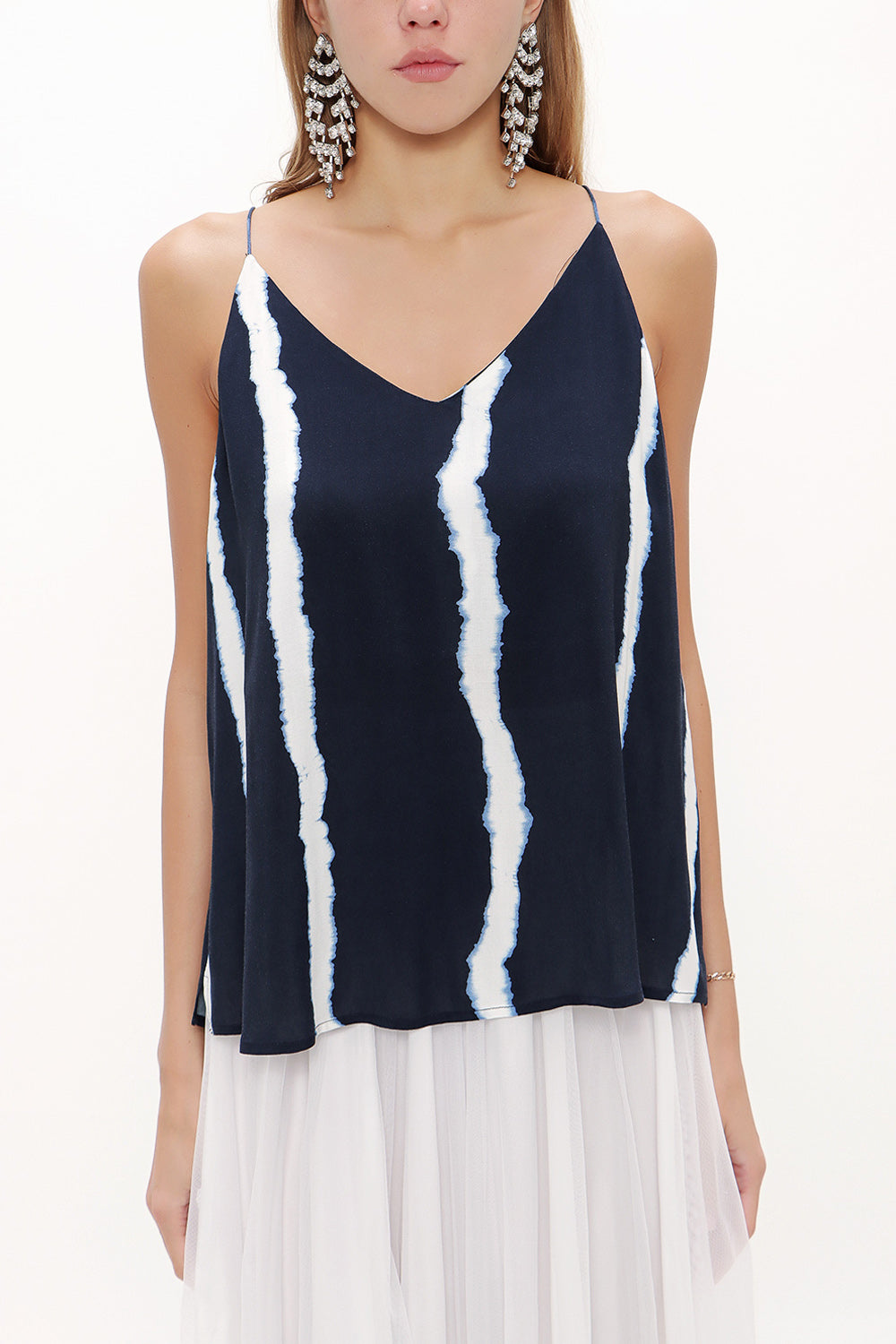 Lacivert Beyaz Çizgili Askılı V yaka bluz 19792