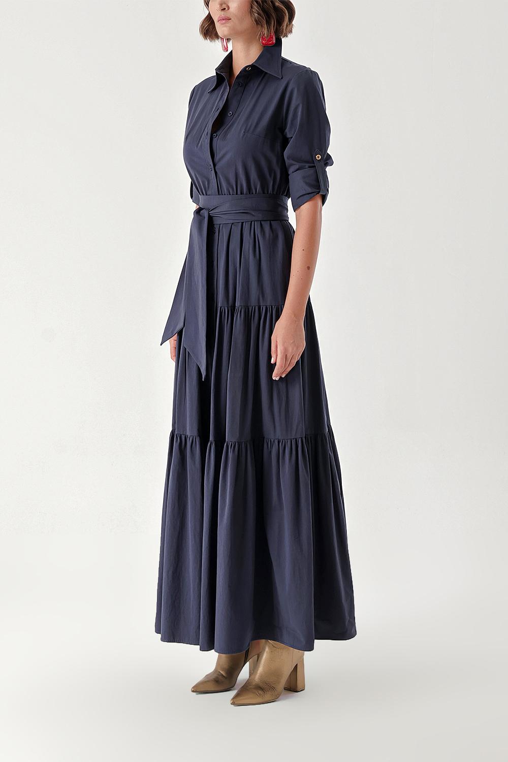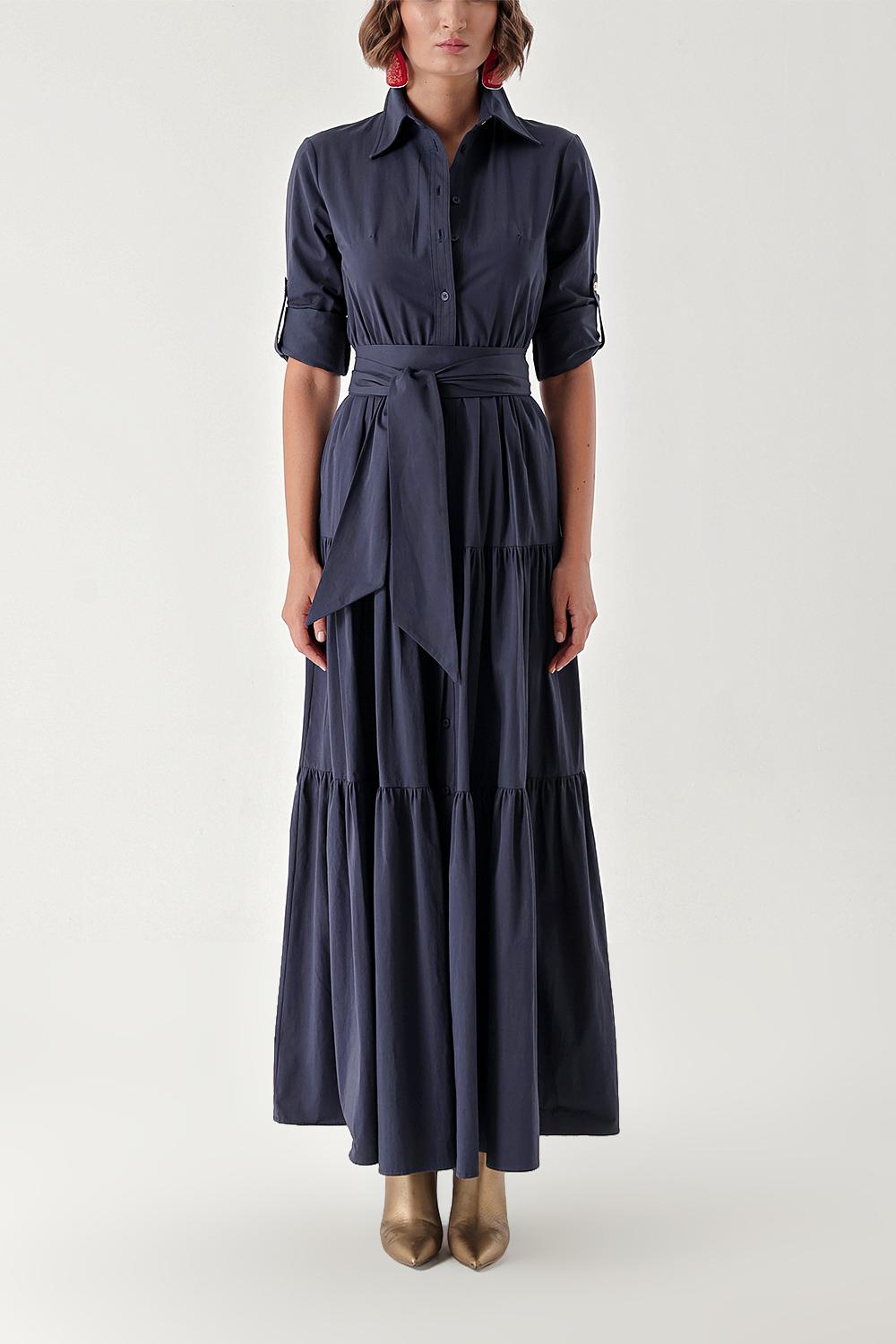 Lacivert Büzgülü gömlek elbise 94241