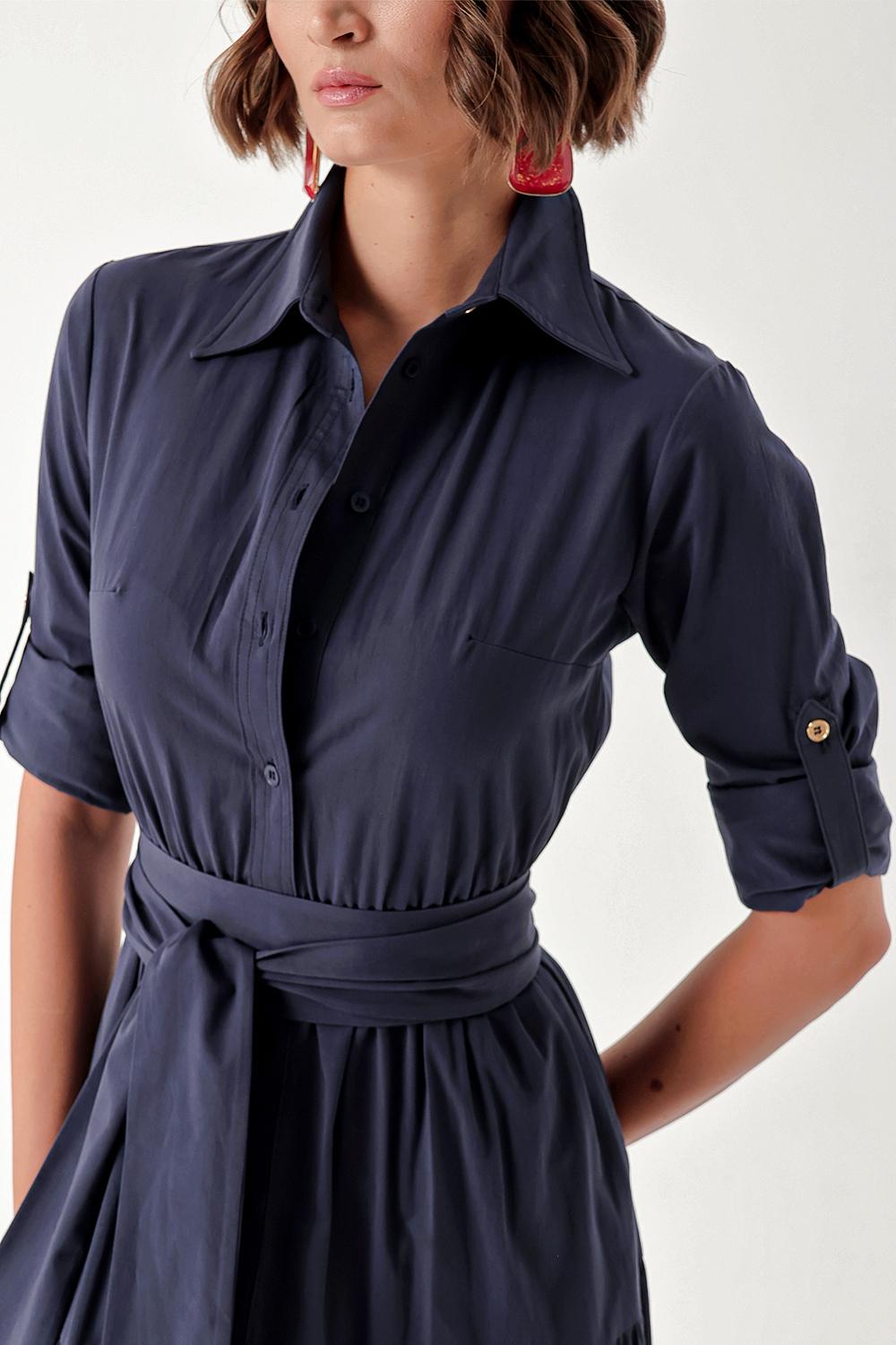 Lacivert Büzgülü gömlek elbise 94241