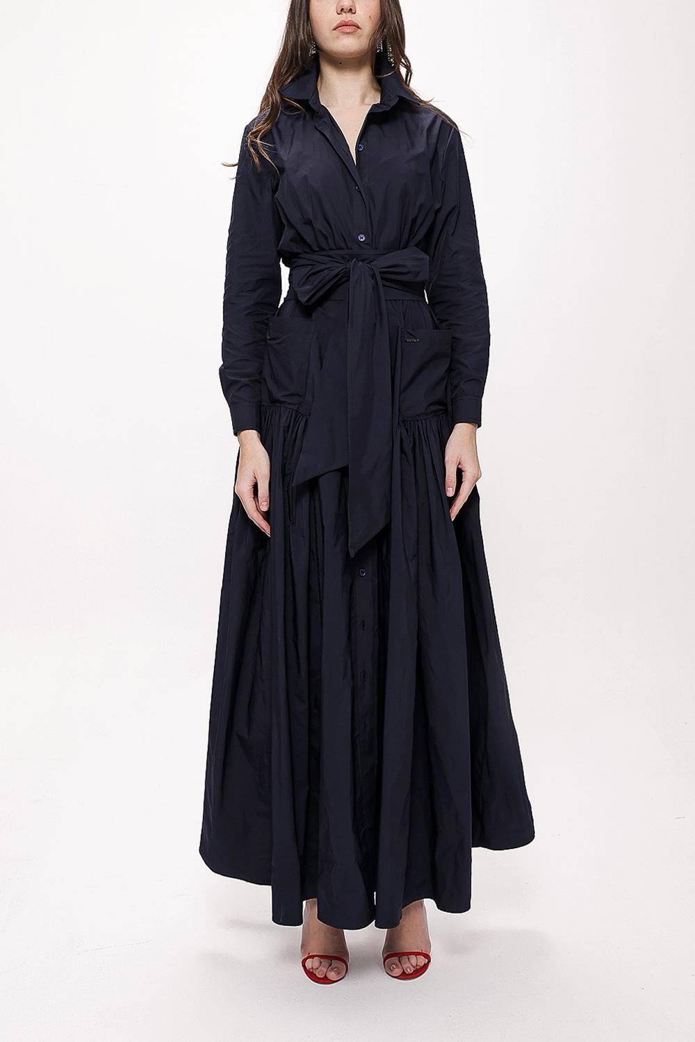 Lacivert Büzgülü uzun tafta gömlek elbise 94198