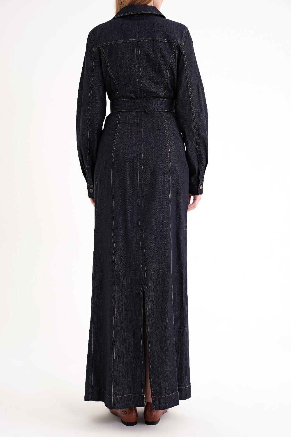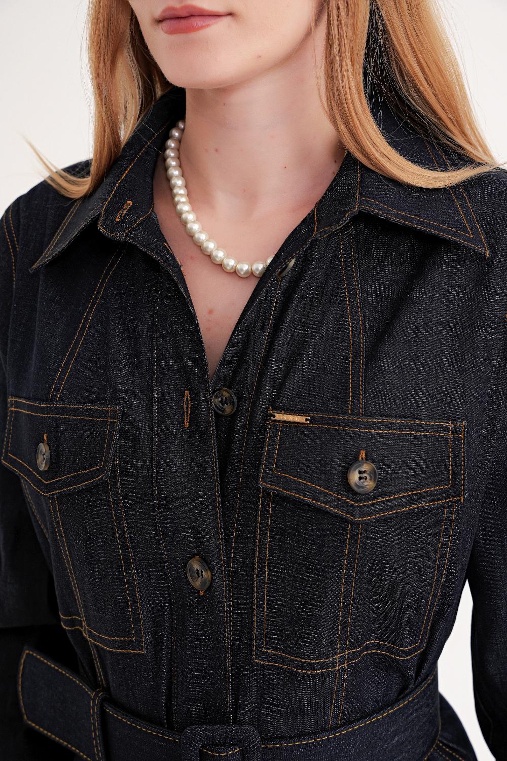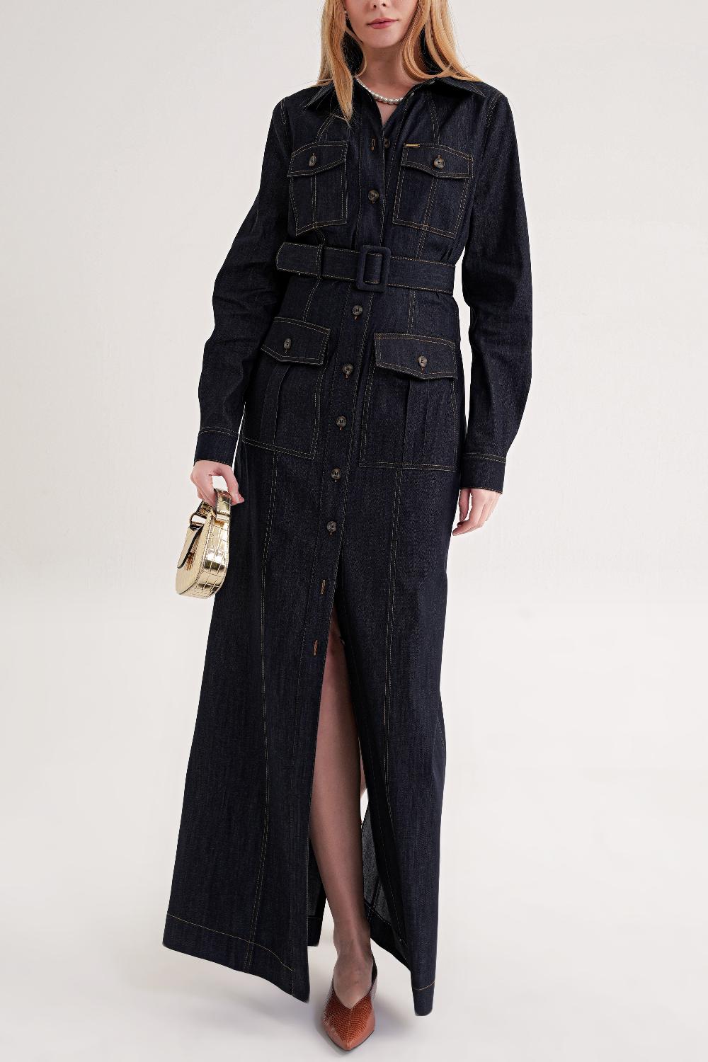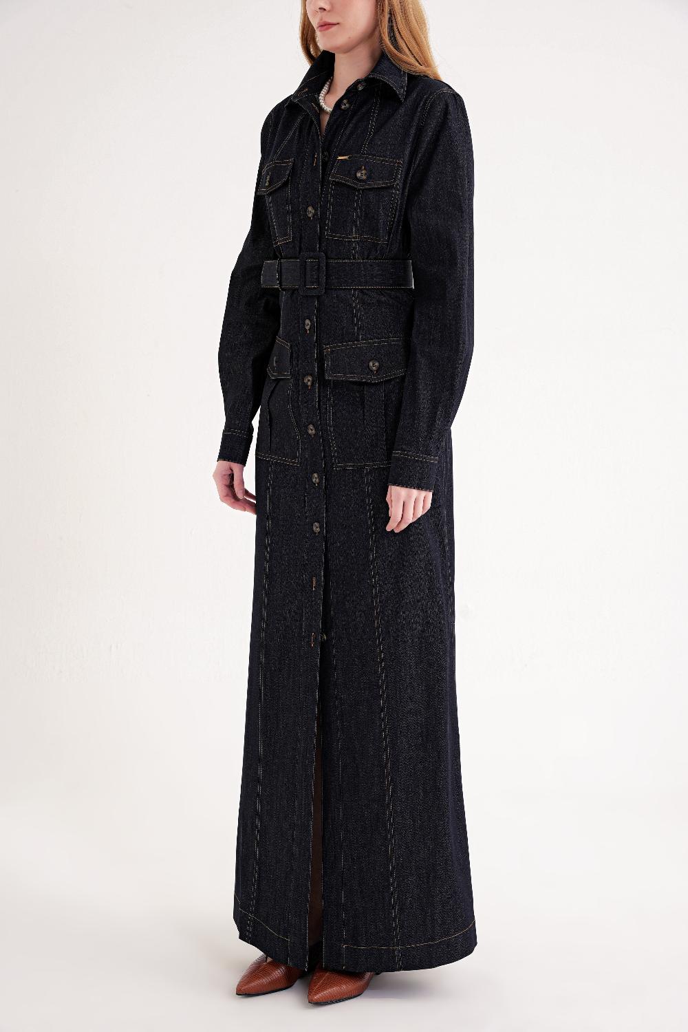 Lacivert Cep detaylı uzun gömlek elbise 94587