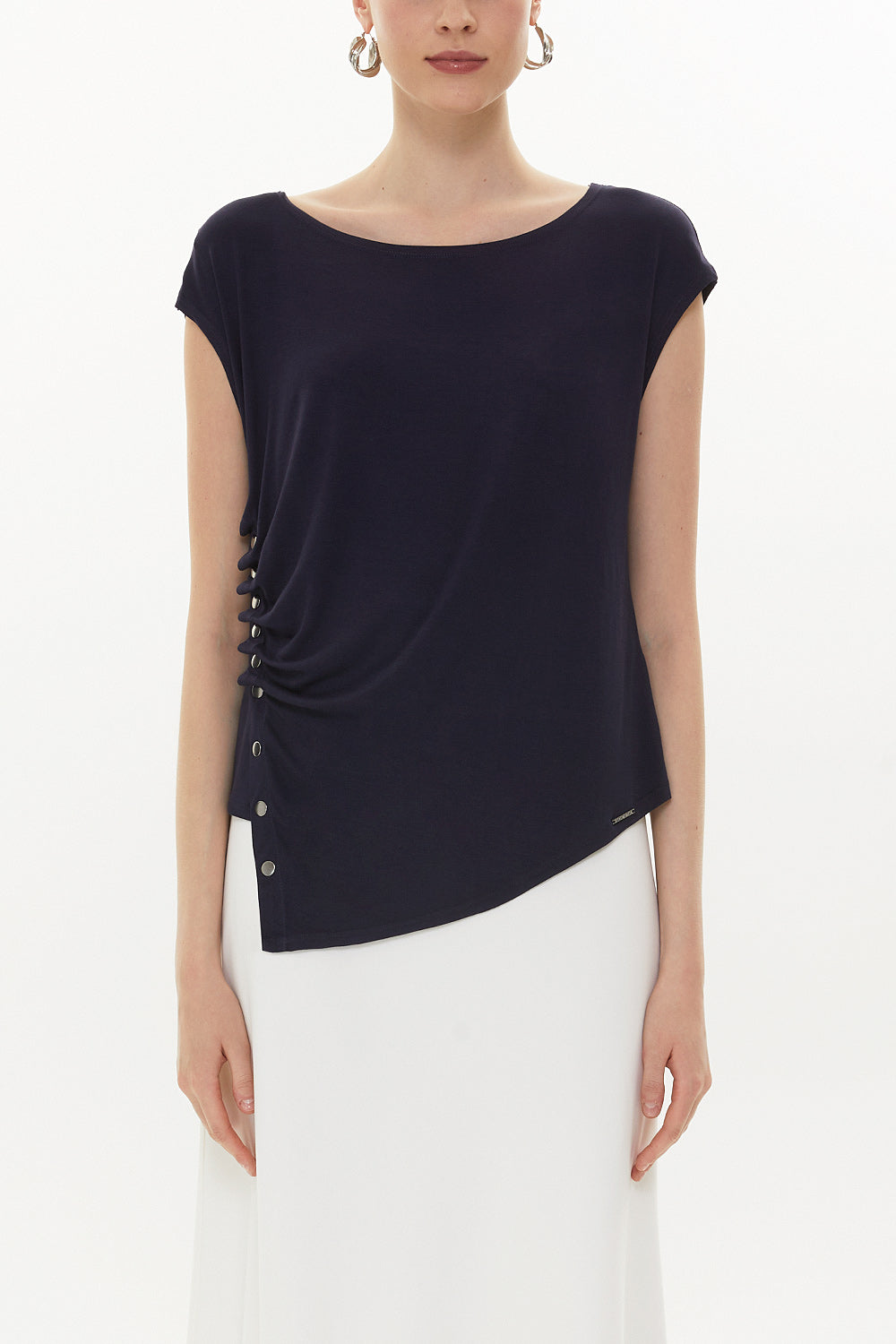 Lacivert Çıtçıt detaylı salaş bluz 19817