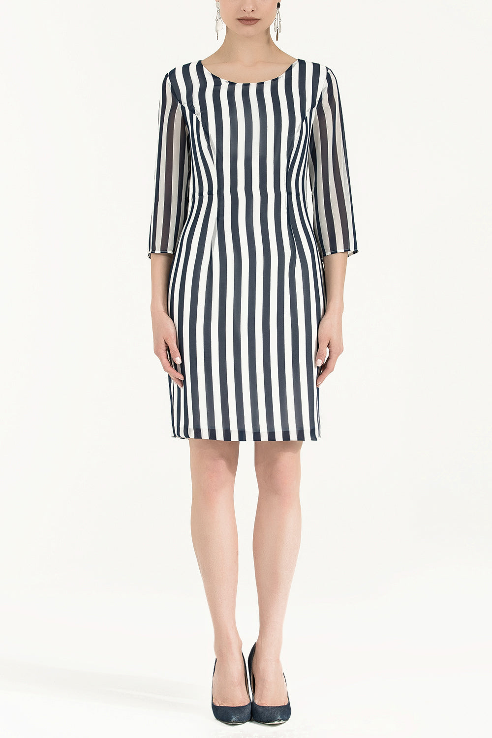 Lacivert Çizgili truvakar kol mini elbise 91674