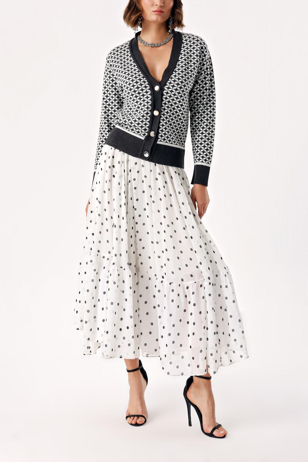 Model Bilgisi: Ürün Bedeni: S / Boy:177, Gögüs:83, Bel:63, Kalça:90 Beden:40