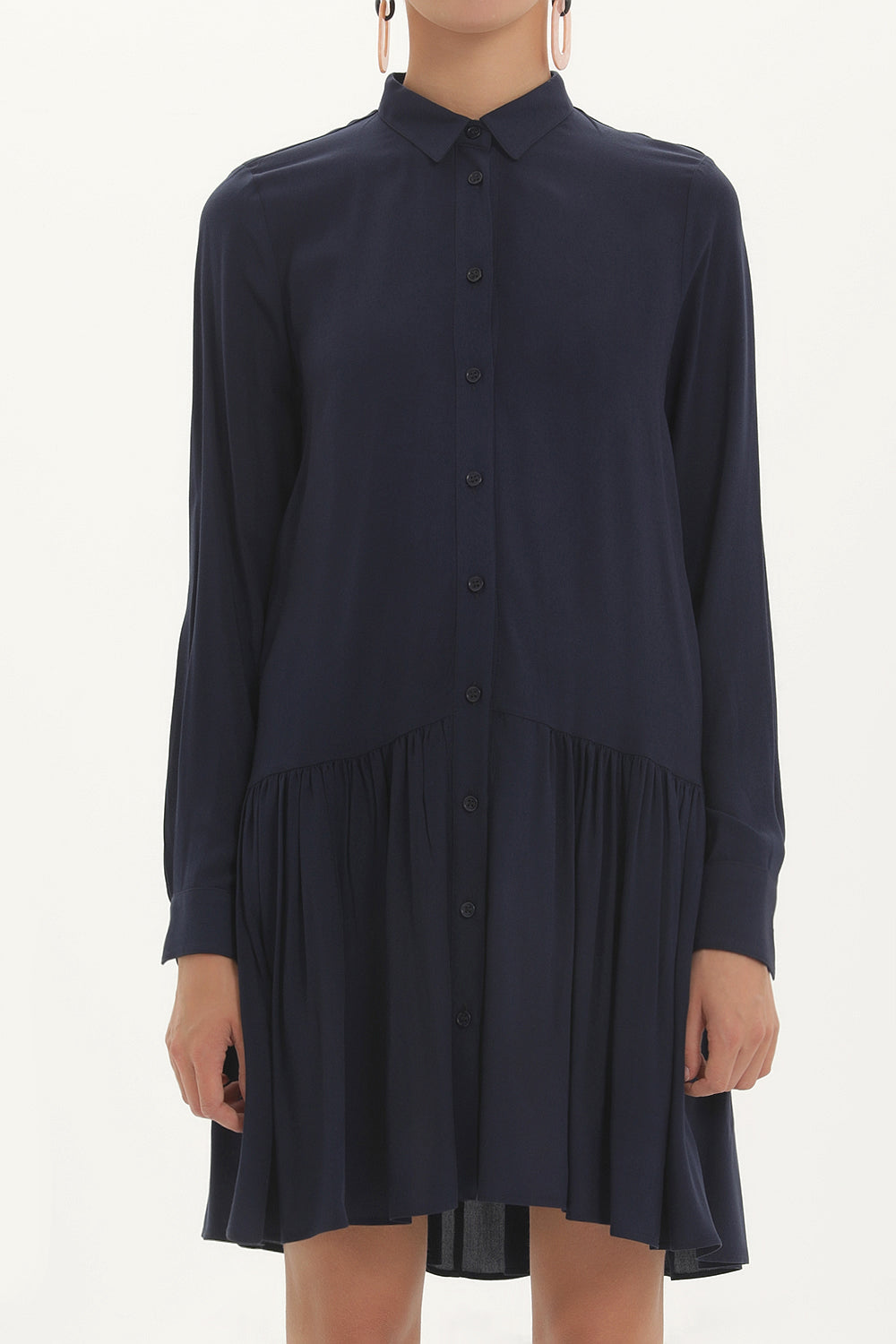 Lacivert Düğmeli bol kesim mini elbise 92411