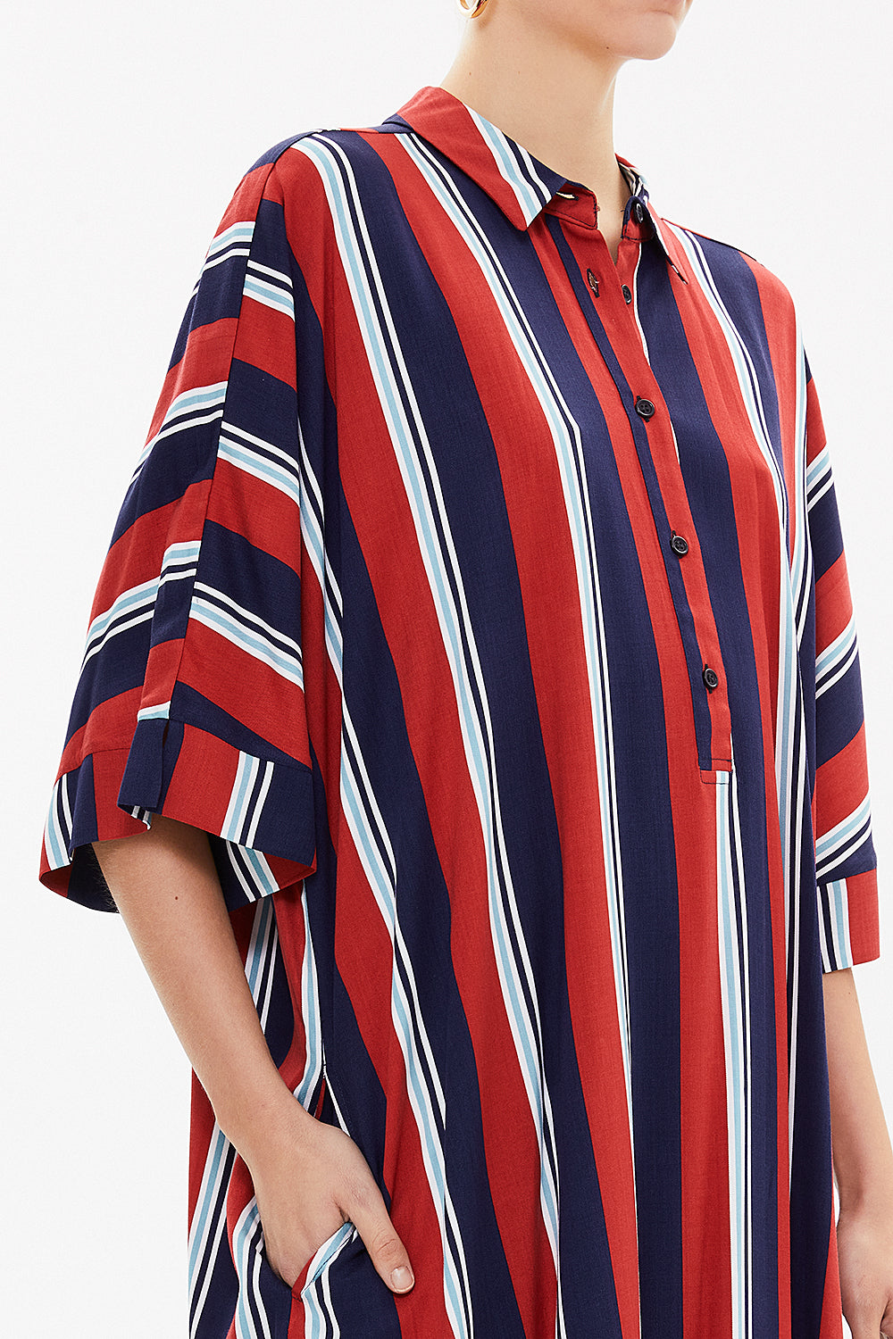 Lacivert Düşük omuz bol kesim midi elbise 92835
