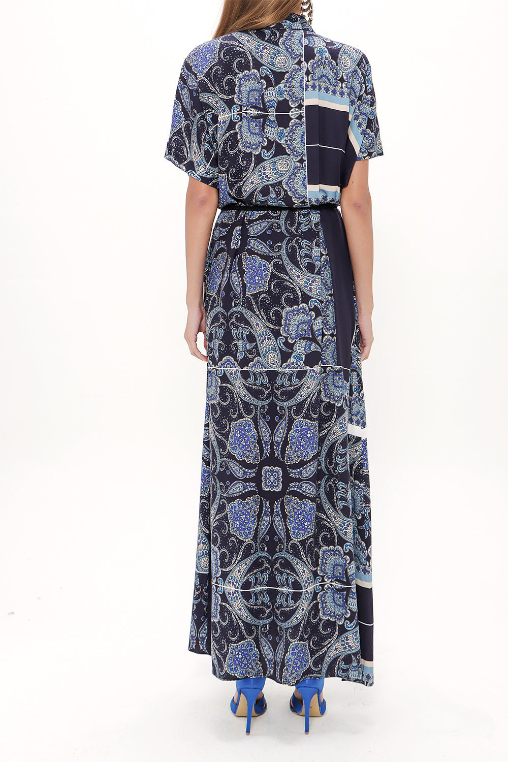 Lacivert Düşük omuz kısa kol kemerli uzun elbise 92796